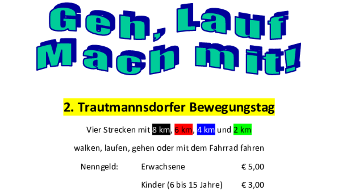 Am Sonntag, den 6. Mai 2012, veranstalten die Trautmannsdorfer ÖVP Frauen den 2. Trautmannsdorfer Bewegungstag.