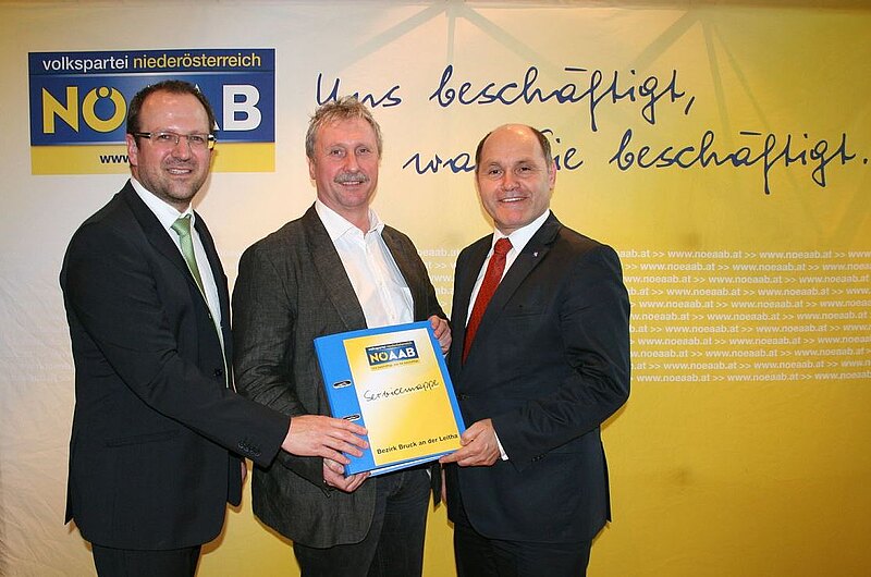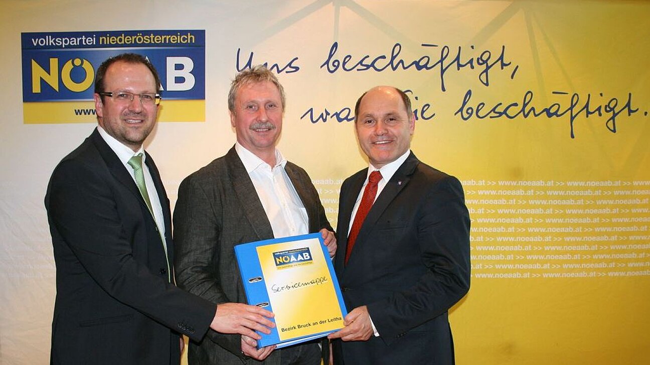Mit einer Serviceoffensive startet der NÖAAB nach der erfolgreich geschlagenen Landtagswahl durch. „Mit 239 Funktionärinnen und Funktionäre im Bezirk Bruck/L. können wir auf ein breites Netzwerk in Gemeinden und Betrieben verweisen. Bürgermeister und Gemeinderäte, Betriebsräte und Personalvertreter sind Anlaufstellen und Drehscheiben für Arbeitnehmerinteressen. Kompetente Ansprechpartner vom Dienstrecht bis zur Arbeitnehmerveranlagung“, lobt NÖAAB-Obmann LH-Stv. Wolfgang Sobotka die politische Arbeit im Bezirk. NÖAAB-Bezirksobmann Gerhard SCHÖDINGER verweist auf Serviceleistungen der vergangenen Monate, die in Zukunft verstärkt werden: „Wir werden weiterhin Informationsveranstaltungen zur Arbeitnehmerveranlagung im Bezirk abhalten. Wir haben insgesamt 600 Informationsfolder zum Pendler-Euro, einer zentralen Forderung des vergangenen Jahres, verteilt und geben Tipps rund um’s Thema Wohnen. Unsere NÖAAB-Förderinformationen und Hinweise zu den wichtigsten Unterstützungsmöglichkeiten in Niederösterreich finden ebenfalls große Wertschätzung.“ Bei einer gemeinsamen Arbeitssitzung in St. Pölten wurden auch die Scherpunktthemen zur kommenden Nationalratswahl festgelegt. „Wohnen, Arbeit und Familie – in allen drei Bereichen können wir auf Bezirks- und Landesebene auf eine ganze Reihe von Erfolgen verweisen“, so NÖAAB-Geschäftsführer Bernhard Ebner.