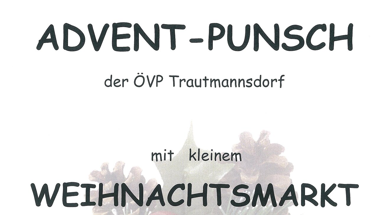 Die ÖVP Trautmannsdorf lädt am Freitag, den 07. Dezember 2012 ab 17 Uhr zum Adventpunsch auf den Marktplatz.