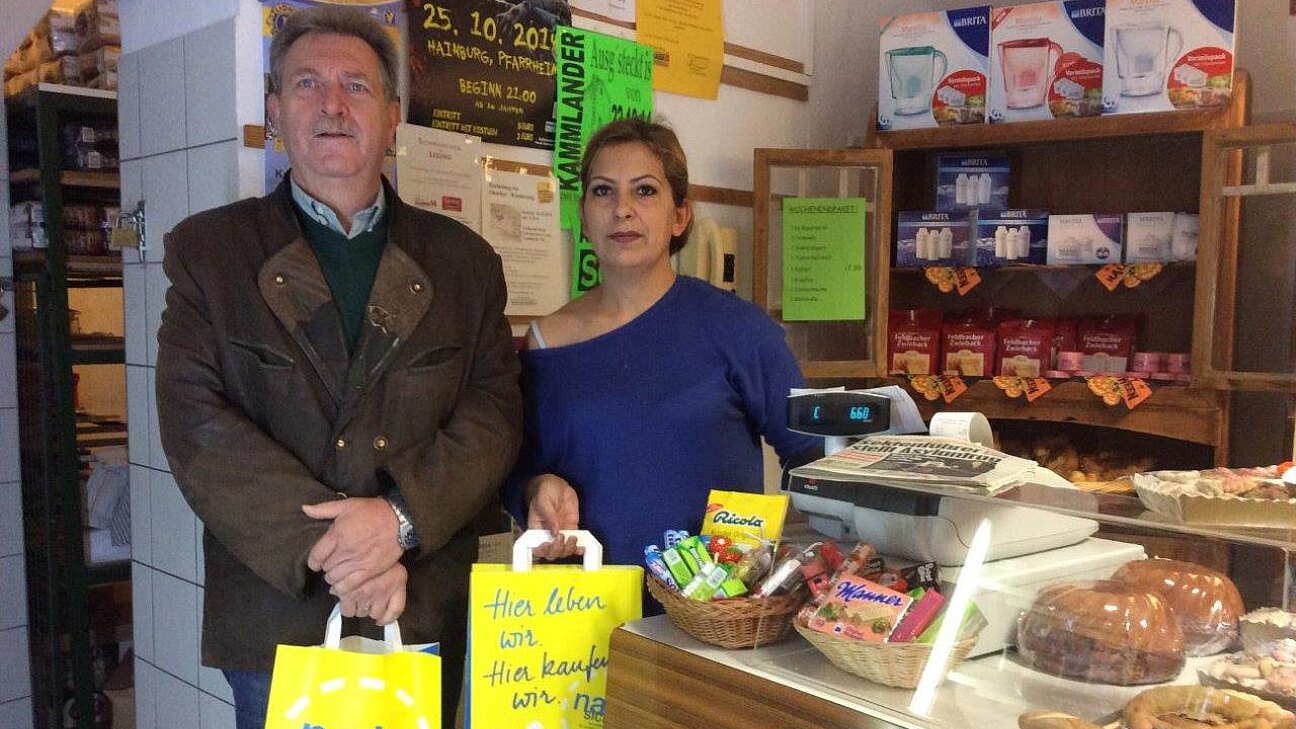 Bild 3: Herr Johann Dorn mit Verkäuferin Leyla Yilmaz, Bäckerei Gspandl, Hainburg