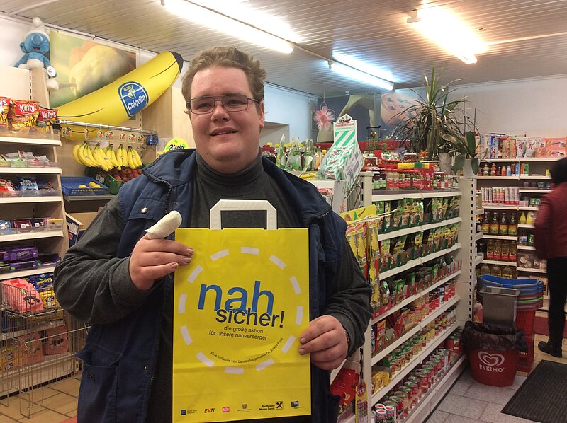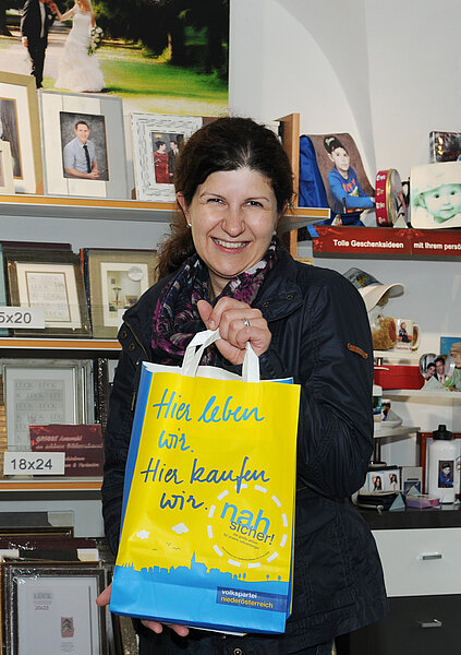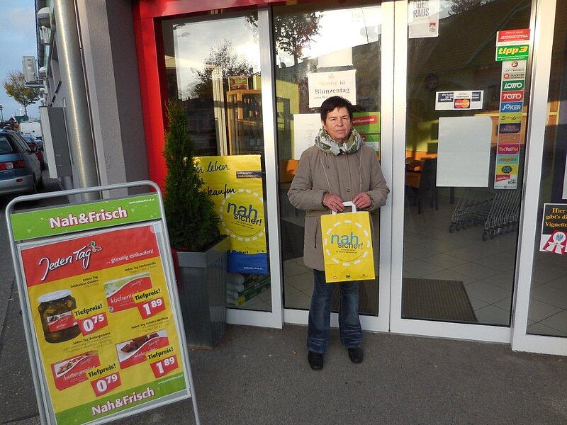 Bild 6: Fr. Rosemarie Köglowitsch aus Wilfleinsdorf mit ihrem Sackerl nach dem Einkauf beim Nah & Frisch in Wilfleinsdorf Wir gratulieren herzlichst!