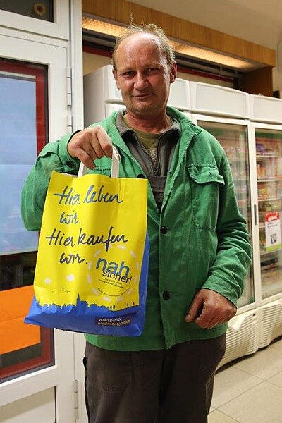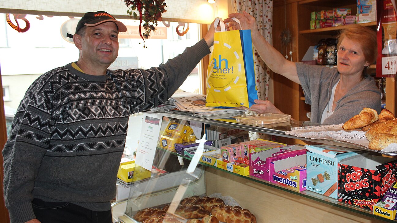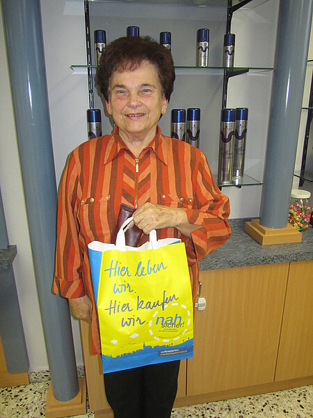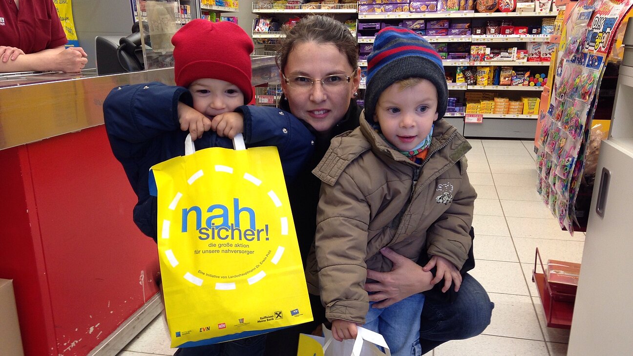Foto 1: Kundin Christa Szegner im Friseurgeschäft „Die Haarschneider“ in Prellenkirchen Foto 2: Herr Otto Hintersteiner hat sein Nahversorger-Sackerl beim Nah & Frisch in Höflein erhalten Foto 3: Frau Christine Beckenberger beim Friseur Heissig in Sommerein Foto 4: Herr Walter Ullreich ist Stammkunde in der Bäckerei Susanne Hafner in Au Foto 5: Frau Christa Madle beim Einkauf in der Trafik Strobl in Bad Deutsch Altenburg Foto 6: Kundin Judith Kremer mit ihren Buben Georg und Rainer beim Spar in Trautmannsdorf Wir gratulieren herzlichst!