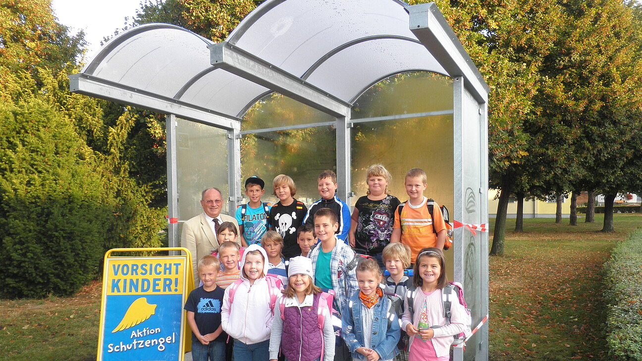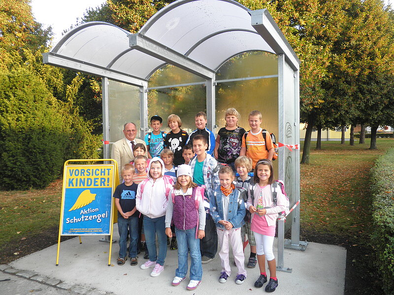Damit die Kinder auch bei Schlechtwetter – Regen, Wind u. Schnee – geschützt auf den Schüler-Bus warten können, wurde in der Gemeinde Scharndorf nach Beschluss durch den Gemeinderat ein neues Buswartehaus in der Parkanlage Hauptstraße 4 angekauft und aufgestellt.