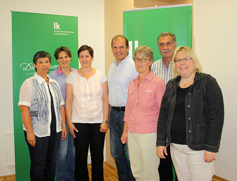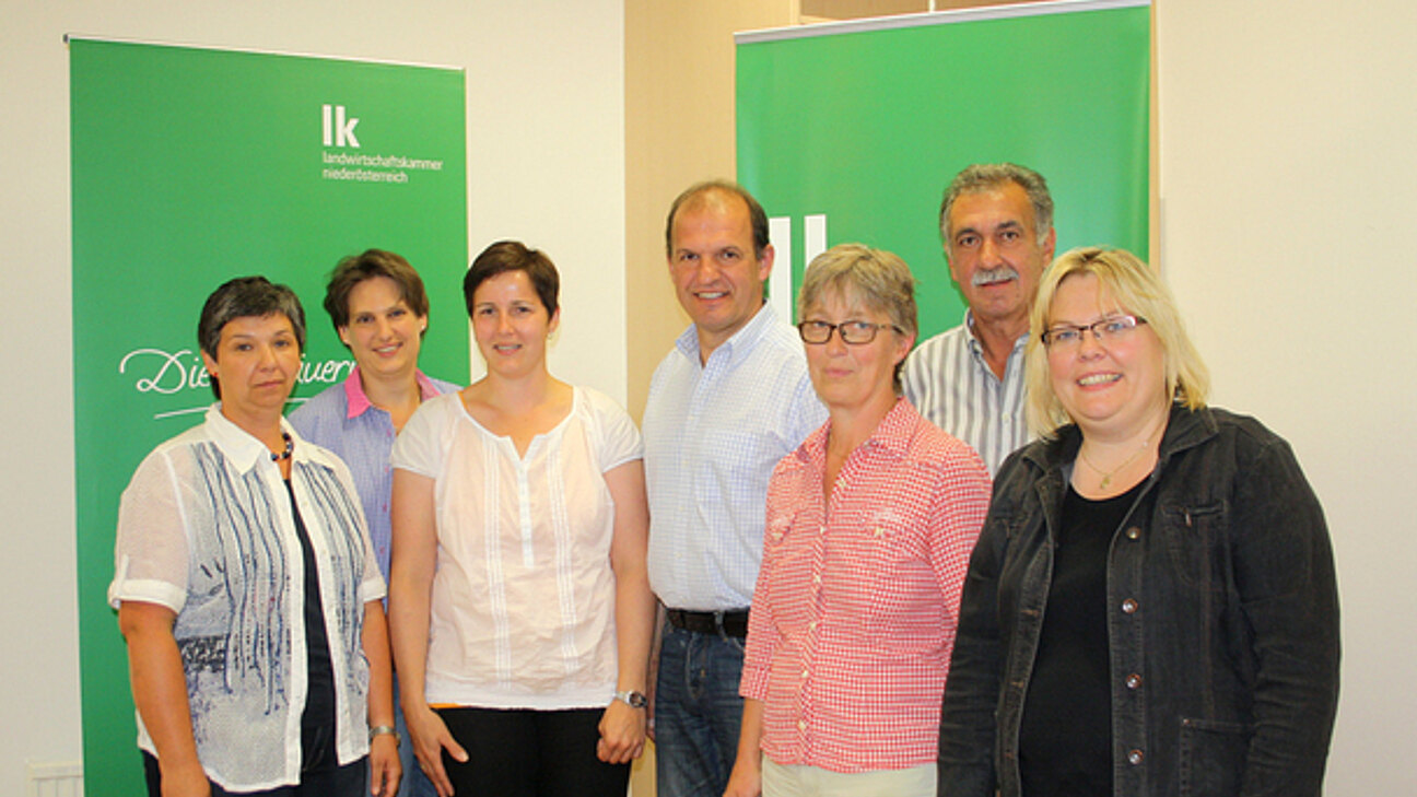 „Die Bäuerinnen“ im Gebiet Bruck/L.-Hainburg/D. haben gewählt". Vizepräsident der NÖ Landwirtschaftskammer Otto Auer und Kammerobmann ÖKR Franz Prendl gratulierten letzte Woche der wiedergewählten Gebietsbäuerin Annemarie Raser bei der Sitzung in der Bezirksbauernkammer Bruck/L. ganz herzlich. Die Wahl zur Bezirksbäuerin für den Bezirk „Bruck/L.-Schwechat“ wird im Herbst 2014 folgen.