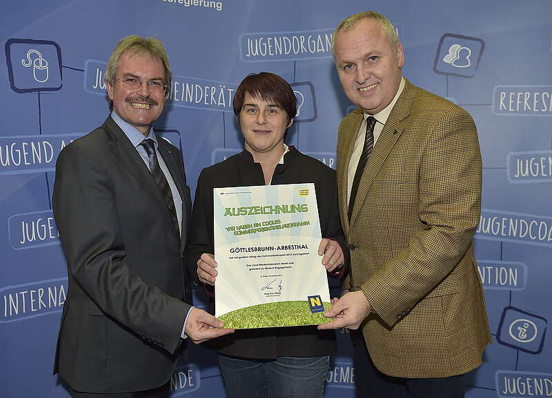 Im Sommer 2014 veranstalteten 144 Gemeinden "coole Sommerferienspiele" und beteiligten sich somit beim Wettbewerb des Landesjugendreferates. "144 Gemeinden haben sich mit ihren innovativen Programmen im Rahmen der Aktion NÖ Jugend-Partnergemeinde beworben, um in der Folge ausgezeichnet zu werden", informiert Jugendlandesrat Karl Wilfling. Am 25. November wurden die teilnehmenden Gemeinden mit Urkunden im NÖ Landtagssaal ausgezeichnet. Davon wurden 10 Gemeinden mit einem von einer Jury zuerkannten Preisgeld von je 1000 Euro, die für weitere Jugendaktivitäten in der Gemeinde einzusetzen sind, ausgezeichnet.