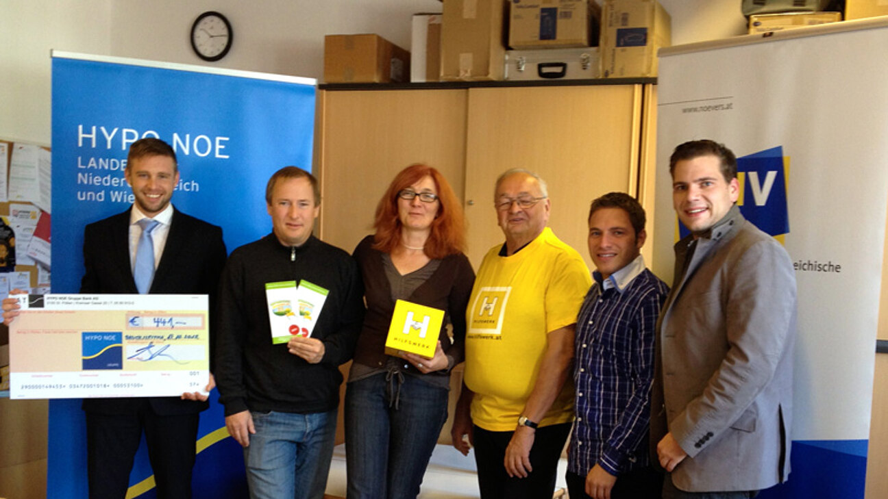 Eine Delegation der JVP lief beim Wachmarathon für die Kinderlernhilfe des Hilfswerks. Unternehmer spendeten 1 € pro gelaufenen Kilometer. Der Spendenbetrag über 441 € wurde nun feierlich übergeben.