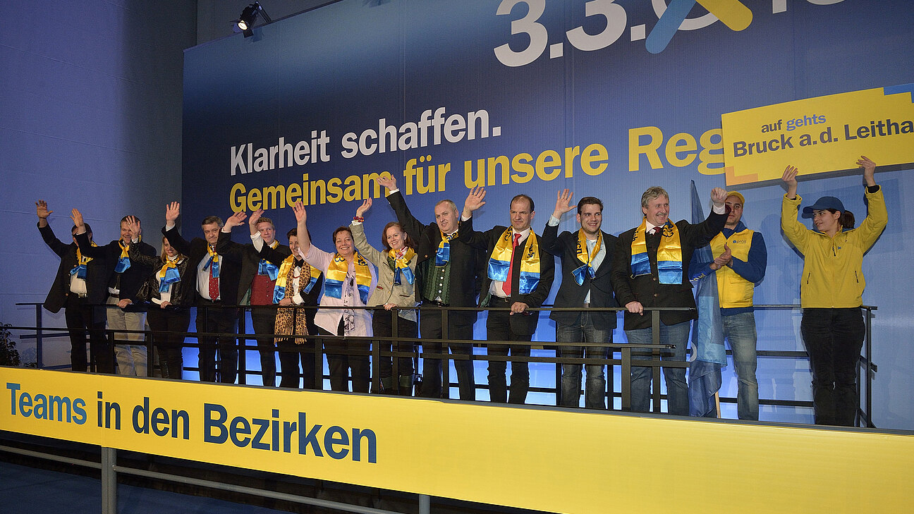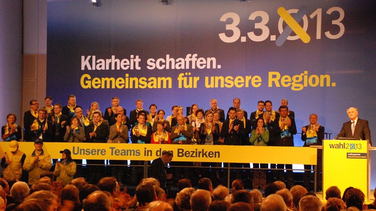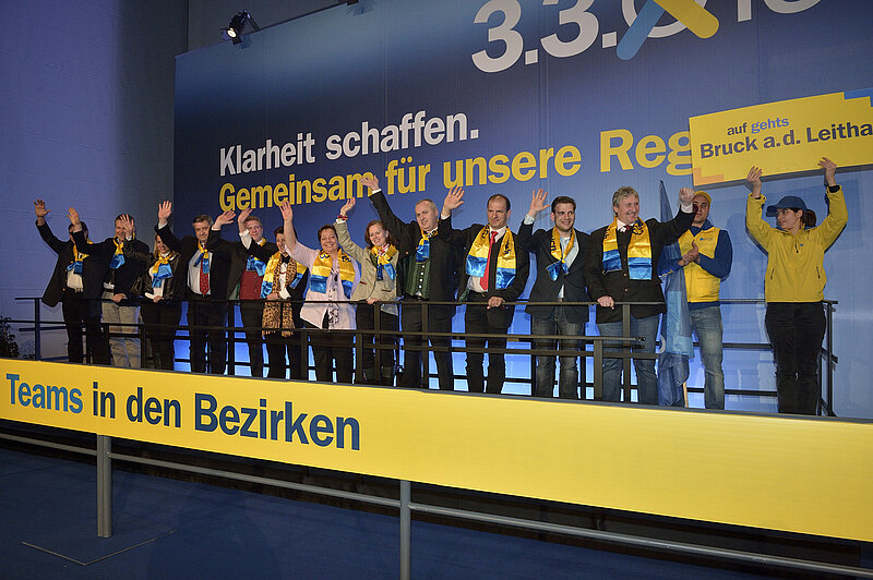 Die Bezirks-Kandidatinnen und Kandidaten von Bruck an der Leitha, Mödling und Wien-Umgebung für die Landtagswahl am 3. März wurden im Rahmen einer Wahlkampf-Veranstaltung in Perchtoldsdorf noch einmal vor den Vorhang gebeten. Landeshauptmann Dr. Erwin Pröll schwor in seiner Rede die „Familie Niederösterreich“ auf die verbleibenden Tage bis zum Wahltag ein. „Packen wir’s an für unser Heimatland Niederösterreich und vertrauen wir auf unsere eigene Stärke und Kraft, damit wir am Wahltag klare Verhältnisse, klare Entscheidungen und Sicherheit auf dem Weg nach vorne für unser Bundesland Niederösterreich erreichen.“ Es gelte so viele Stimmen nach Hause zu holen, damit Niederösterreich das bleibe, zu dem es in den vergangenen Jahrzehnten geworden sei. Acht Listen hätten das gemeinsame Ziel, die absolute VP-Mehrheit zu brechen. Das sei in einer Demokratie ohne Frage legitim, aber „kein Zukunftsprogramm für das Land“, betonte der Landeshauptmann. Kritik gab es am Antreten des Herrn Stronach, der zwar als Listenerster kandidiere, aber dann nicht in den Landtag einziehen und für das Land arbeiten wolle. Mit seinen „Diktatur-Vergleichen“ und täglichen Beschimpfungen beleidige Stronach in Wahrheit Land und Leute, während er am 4. März in seinem Luxus-Jet in seine kanadische Heimat fliege, so der Landeshauptmann. Der 3. März sei die beste Chance, das zurückzuweisen und Klarheit zu schaffen für Niederösterreich am Weg nach vorn. Der Wahlgang sei aber keine „g‘mahte Wiesn“ für die Volkspartei Niederösterreich, appellierte Pröll an seine Gesinnungsgemeinschaft, in den kommenden Tagen Überzeugungsarbeit zu leisten. Es dürfe „kein Haus, keinen Platz, kein Wirtshaus“ geben, „wo wir nicht gesagt haben, was wir geleistet haben und was am Spiel steht.“ In der Vergangenheit seien Herausforderungen bewältigt worden, verwies Pröll u.a. auf die Wirtschafts- und Finanzkrise. Das Bundesland habe aufgeholt und sich durch Internationalisierung und auch die Kulturszenerie einen anerkannten Platz auf europäischer Ebene erarbeitet. National und international stehe man in Zeiten härter werdender Arbeits- und Lebenswelten aber vor vielen Fragezeichen, sprach er sowohl die Frage des Euro als auch die kommende Nationalratswahl an. Umso wichtiger seien Einsatz und Durchsetzungsvermögen in der Zukunft. Inhaltlich gehe es um den weiteren Ausbau des Sozialbereiches, noch innovativer zu werden, wodurch im Land zukunftsträchtige Jobs geschaffen werden, und in der Verwaltung noch schneller und effizienter zu werden. Vor der Rede von Landeshauptmann Dr. Erwin Pröll waren die 15 jeweils Kandidatinnen und Kandidaten aus den Bezirken in den Saal eingezogen. Die Stimme des SK Rapid, Andy Marek, führte durch die Veranstaltung. Zum FotoalbumZum Video