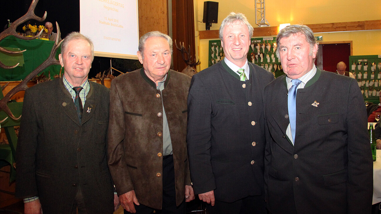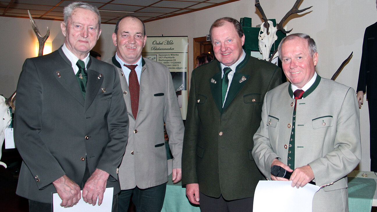 Bezirksjägermeister Johann Dietrich durfte zum heurigen Bezirksjägertag in der Brucker Stadthalle auch den Stvtr. Präsidenten der NÖ Landwirtschaftskammer, Bgm. Otto Auer sowie VP-Bundesrat Gerhard Schödinger und den Stvtr. Landesjägermeister Rupert Gruber begrüßen. Willibald Preselmaier aus Regelsbrunn erhielt bei dieser Gelegenheit den "Ehrenbruch" in Gold für 60 Jahre Jagdkartenbesitz überreicht. Auch Bezirksjägermeister Stvtr. Franz Glock gratulierte dazu herzlichst.