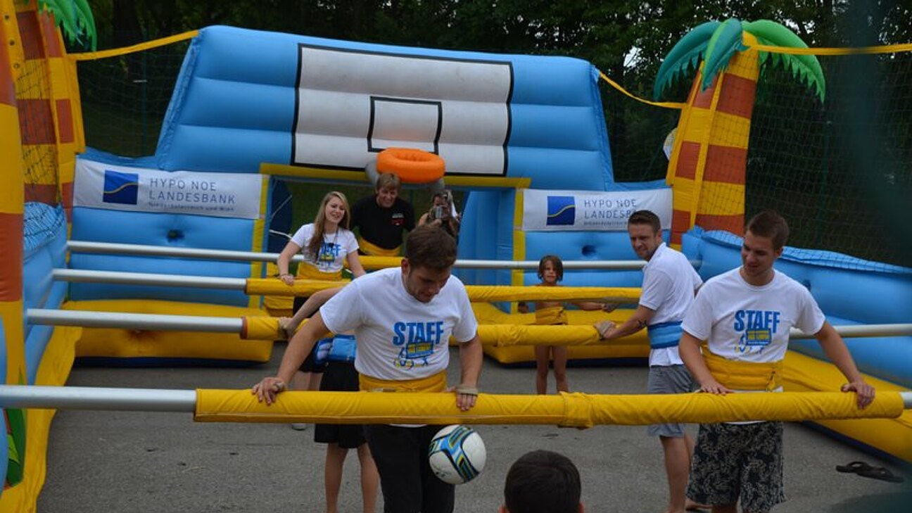 Mit dieser Aktion will die JVP NÖ Kinder und Jugendliche zu mehr Bewegung bringen. In der Funsportwelt gab es unter anderem einen Riesenwuzzler, Slackline, Einrad, Diabolo, Beachvolleyball, Basketball und mehr.