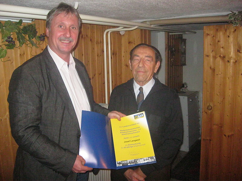 Herrn Josef Langweil, Frau Theresia Peiker und Herrn Johann Trobitas wurde eine Urkunde für ihre 65-jährige Mitgliedschaft überreicht. Herr Eduard Podhradszky wurde für seine 60-jährige Mitgliedschaft geehrt.