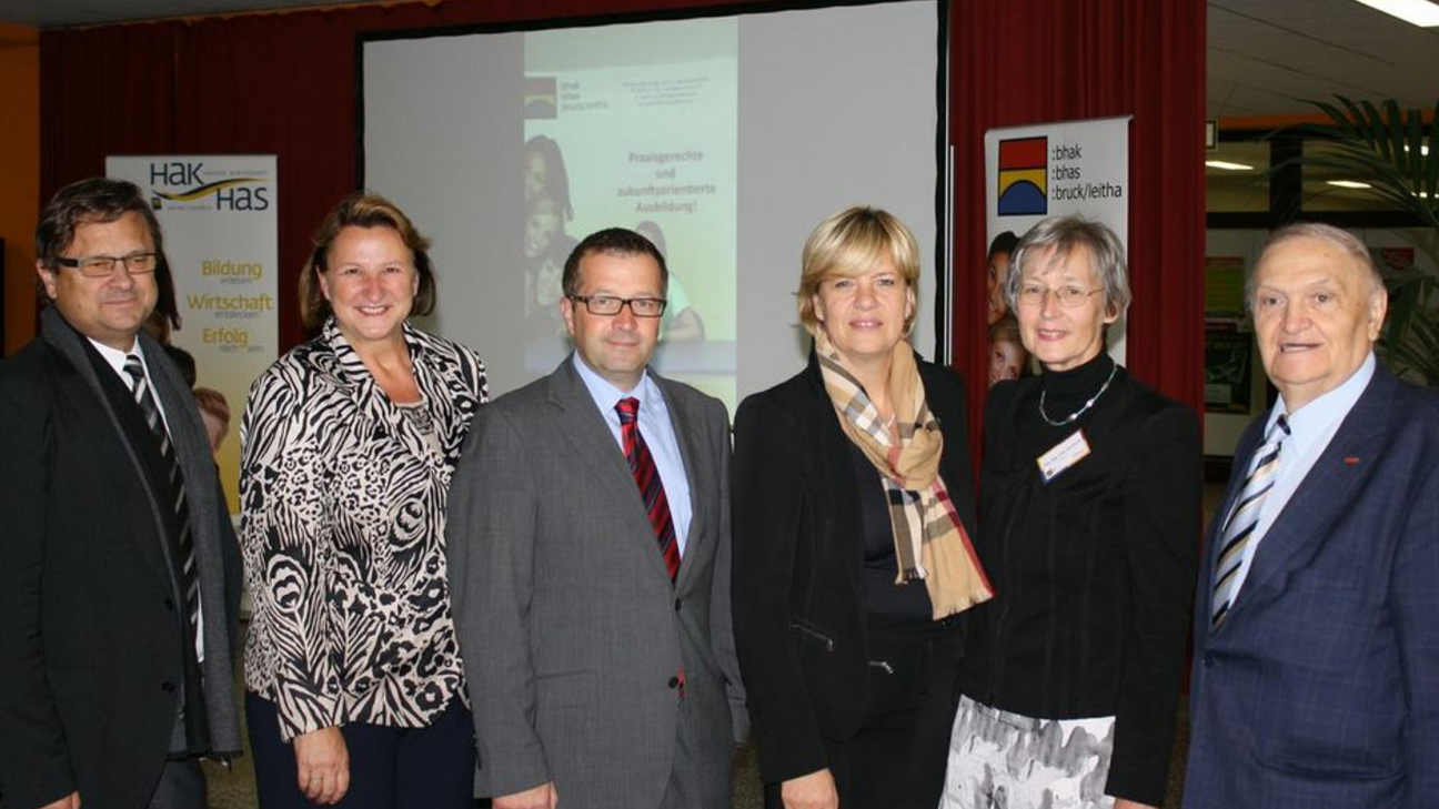 Zahlreiche Ehrengäste, u.a. auch Landesrätin Mag. Barbara Schwarz und Landesschulinspektor Mag. Karl-Heinz Jirsa, sowie ehemalige Absolventen der Handelsschule sowie der Handelsakademie in Bruck versammelten sich vergangenen Freitag zur großen Jubiläumsfeier in der Schulaula.