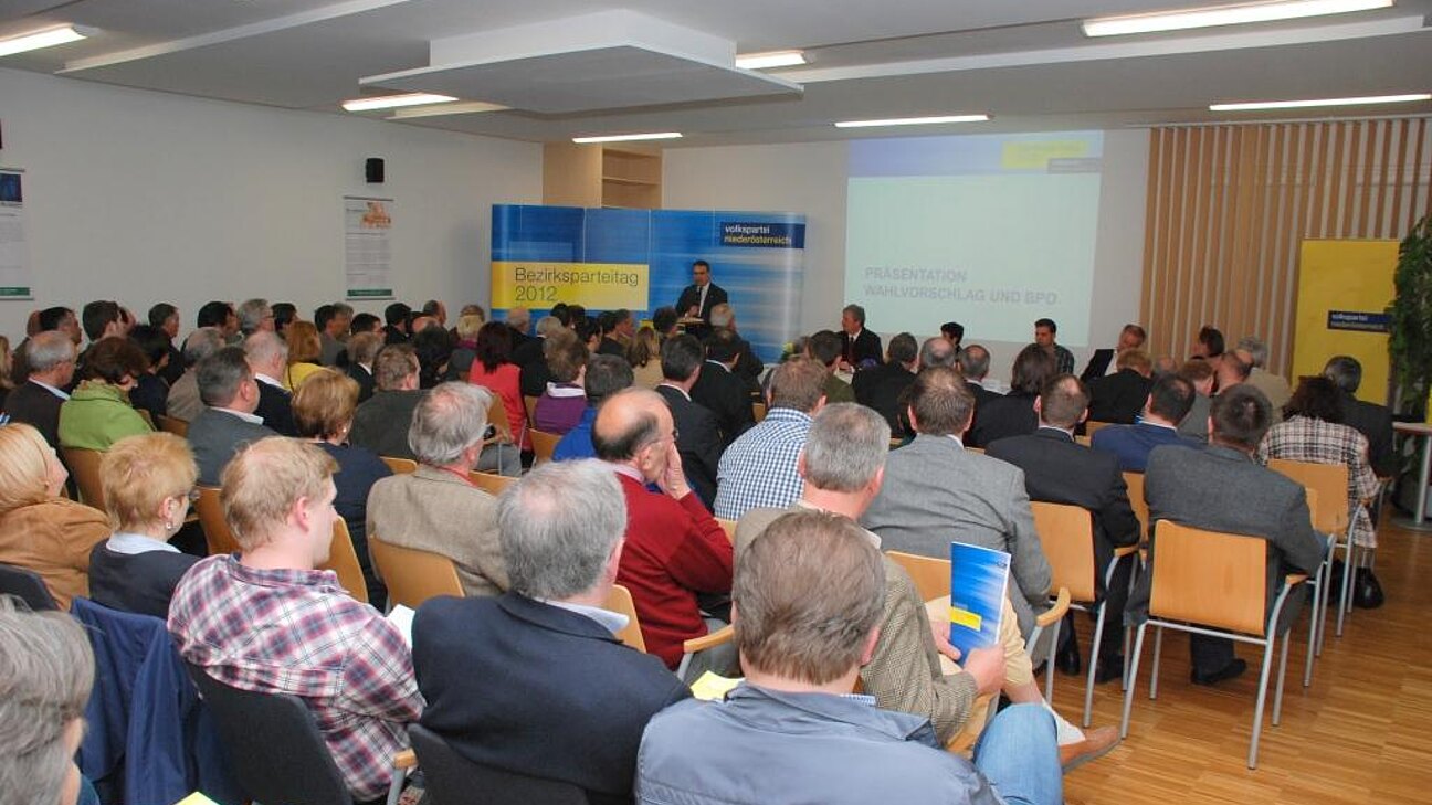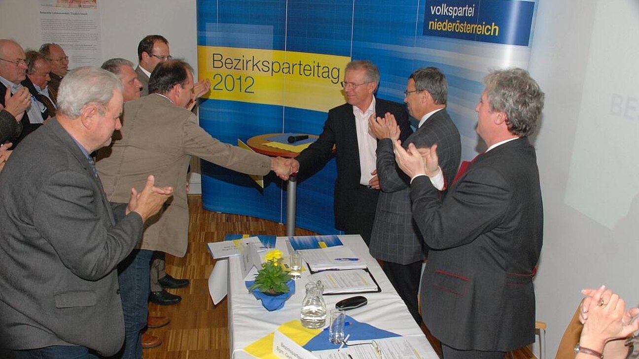 Der am 29.3.2012 unterbrochene Bezirkstag wurde am 24.04.2012 fortgesetzt. Bgm. Gerhard Schödinger wurde mit über 76 % als neuer ÖVP Bezirksparteiobmann gewählt.