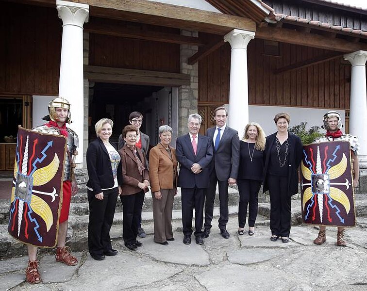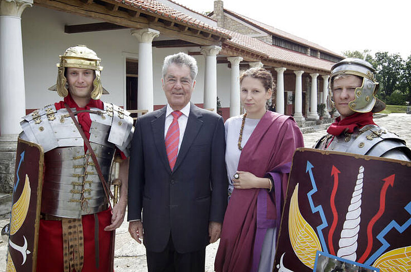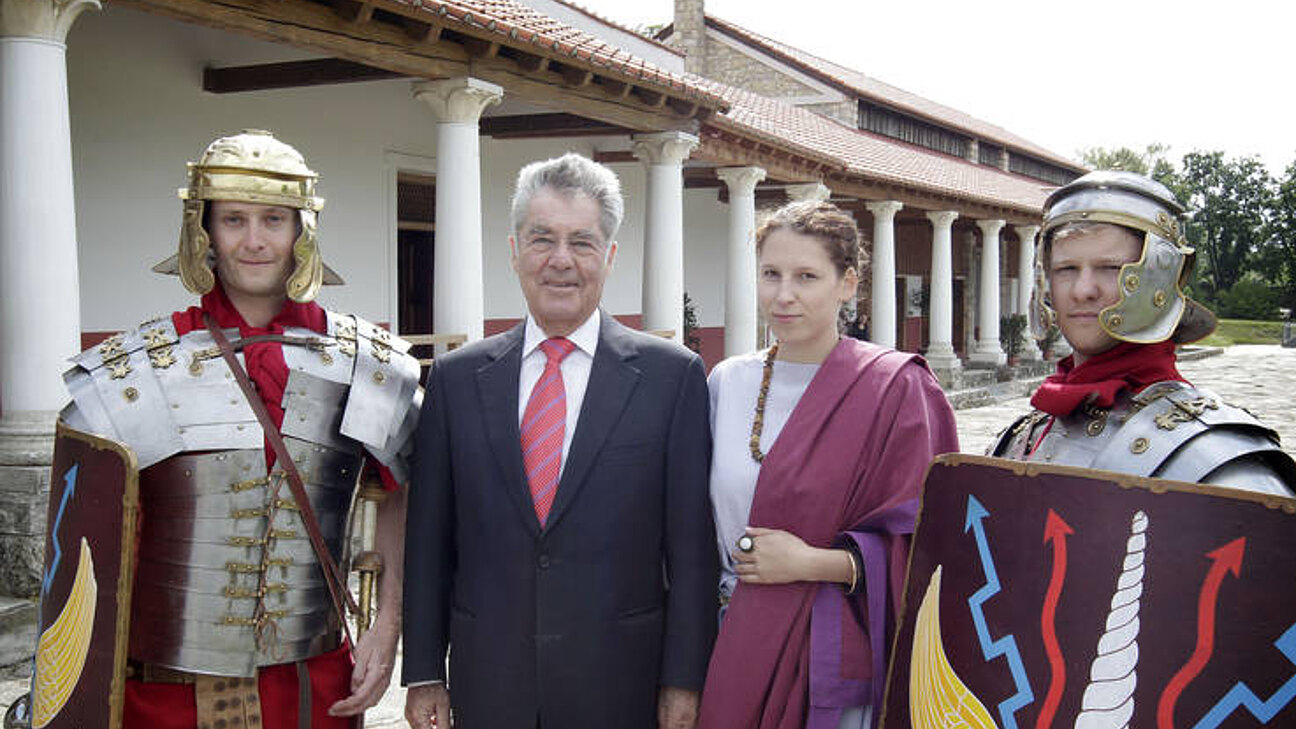Beim anschließenden Stadtrundgang absolvierte der Bundespräsident eine Betriebsbesichtigung im Hotel "Altes Kloster" und bestaunte das beeindruckende Wienertor. Es ist das größte mittelalterliche Stadttor Euopas. Superintendent Paul Weiland und Pfarrer Laszlo Laszlo begrüßten Heinz und Margit Fischer in der Martin Luther Kirche. In der Hainburger Neuen Mittelschule in der Babenbergerstraße 27 erfuhr der Bundespräsident von Frau Direktorin Roswitha Köpplinger Details über den schulischen Alltag, danach zeigten die Kinder beim Showprogram im Turnsaal, was sie sportlich-akrobatisch draufhaben. In Schlosshof besichtigte der Bundespräsident die Sonderausstellung "Triumph Passion. 350 Jahre Prinz Eugen" und eröffnete die "Gartentage". Nah dem Zusammentreffen mit den Bürgermeistern der slowakischen Nachbargemeinden wurde gemeinsam auf der "Fahrradbrücke der Freiheit" an jene Zeit gedacht, als die beiden Länder noch durch den "Eisernen Vorhang" getrennt waren. Der Abschluss des Niederösterreich-Tages von Bundespräsident Heinz Fischer war dem Archäologischen Park Carnuntum gewidmet.