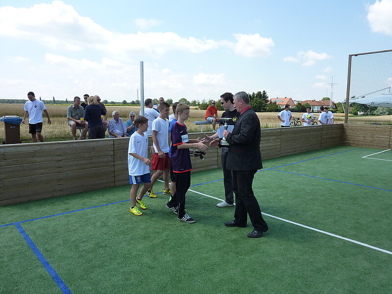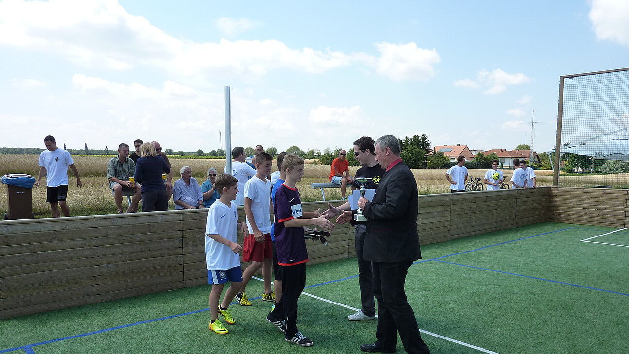 Die Plätze drei und vier belegten "Die Jugendtrainer des SC Haslau/Maria Ellend" und die "FF-Maria Ellend". Mit 16 Treffern wurde Matthias Weiß zum Torschützenkönig gekrönt. Das Siegerteam erhielt den begehrten Wanderpokal, welchen es nächstes Jahr zu verteidigen gilt. Zuvor waren bereits drei U14 Mannschaften am Feld und zeigten ihr Können. Bundesrat Gerhard Schödinger überreichte den erfolgreichen Sportlern Ehrenurkunden und Pokale. JVP-Obmann Roman Rausch blickt auf einen erfolgreichen Tag zurück.