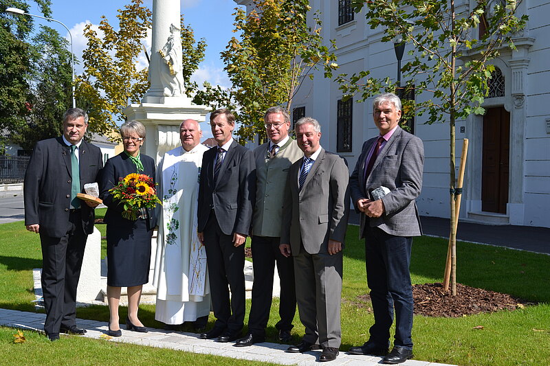 Bgm. Markus Plöchl und Landesrätin Dr. Petra Bohuslav eröffneten am Wochenende im Beisein von Pfarrer Herbert Baumann, Bezirkshauptmann Dr. Peter Suchanek, Vizebgm. Michael Kober sowie Bundesrat Werner Herbert und Planer Franz Paikl den neuen Kirchenplatz in Margarethen/Moos.