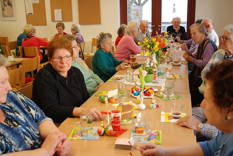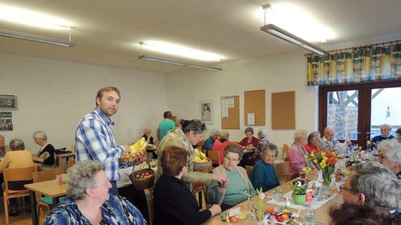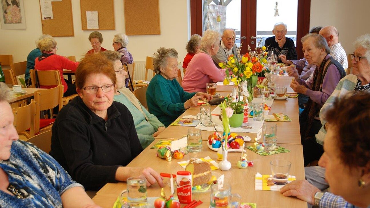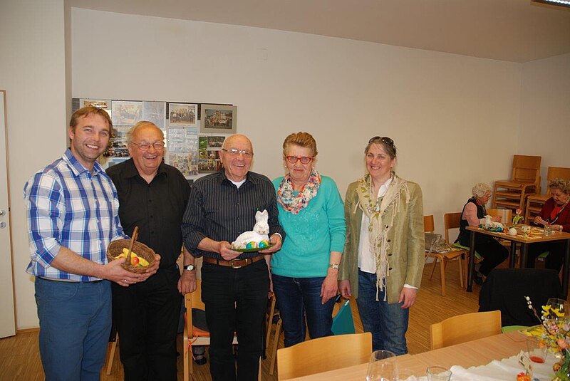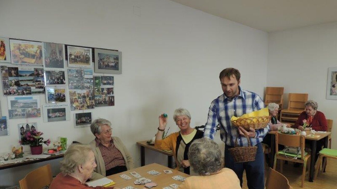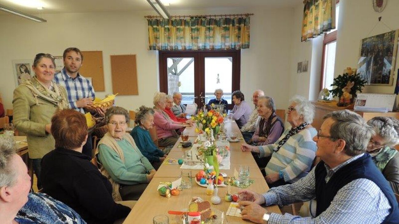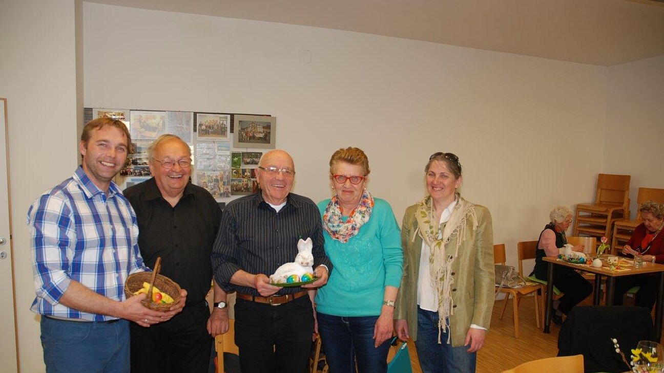Anlässlich des bevorstehenden Osterfestes hatte Organisationsreferentin Josefa Ecker für farbenfrohen Tischschmuck und Osterlämmer gesorgt, Stadtrat Sigi Steurer-Thimm und Obfrau Judith Kögl brachten den Senioren farbenfrohe Ostereier vorbei.
