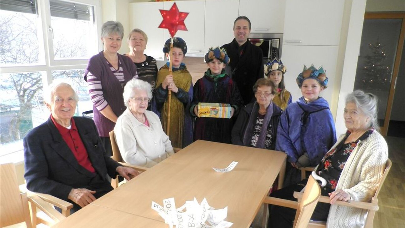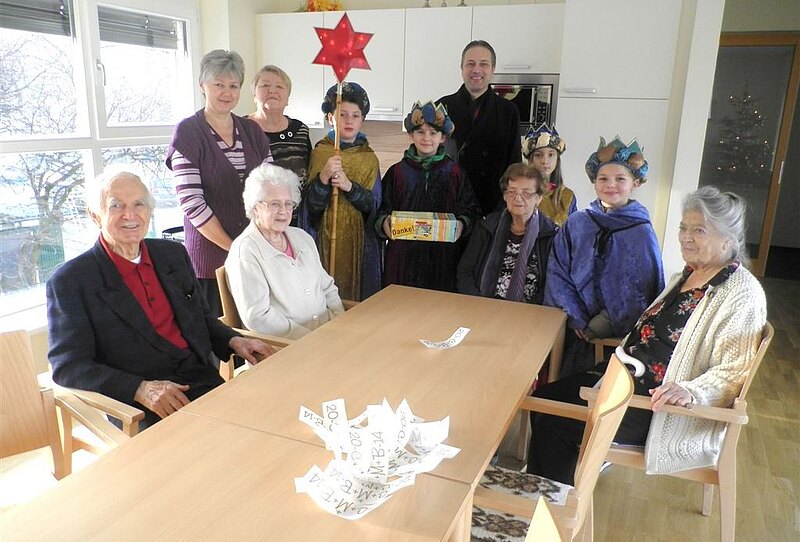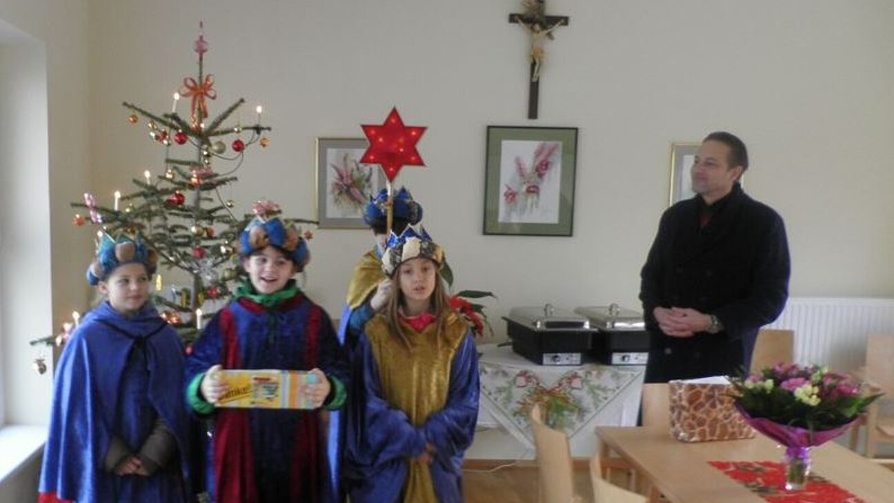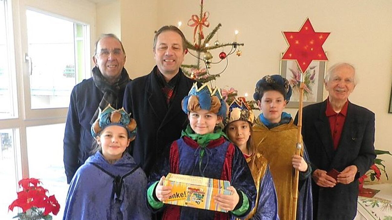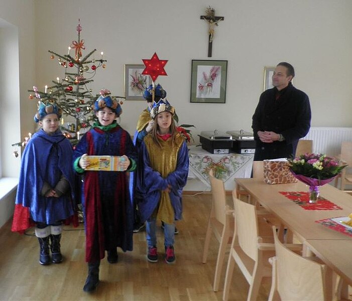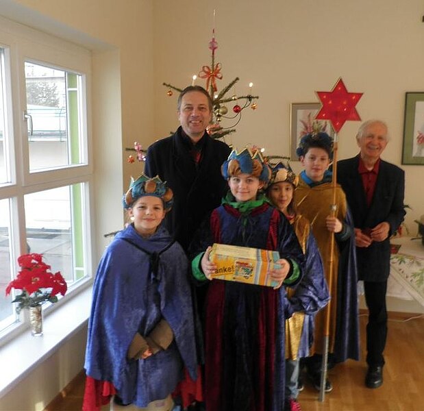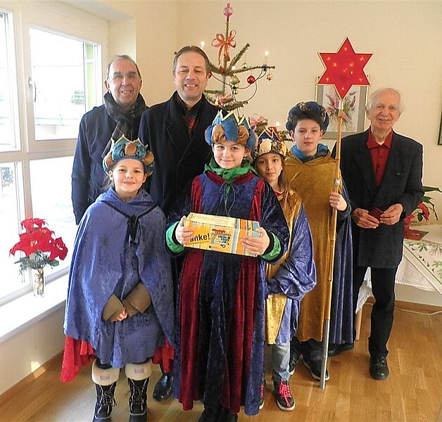 Der ehemalige Obmann des Seniorenbundes der ÖVP, Herr Rudolf Reiner und Herr Josef Gamperl begrüßten die hl.3 Könige in der Seniorenresidenz Bad Deutsch-Altenburg. Geführt wurden die Sternsinger vom Obmann des ÖAAB, Herrn Reinhard Hohenegger. Die Bewohner des Hauses freuten sich sehr über die "Alten Texte", die von den Kindern liebevoll vorgetragen wurden. So mancher Pensionist erinnerte sich an die Zeit, als er noch selbst als König von Haus zu Haus zog. Die alten Herrschaften zeigten sich auch sehr spendenfreudig für den guten Zweck.