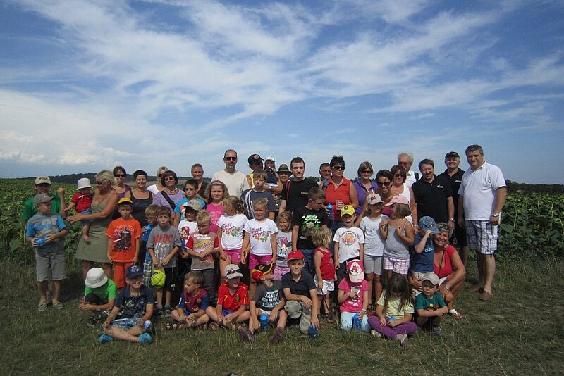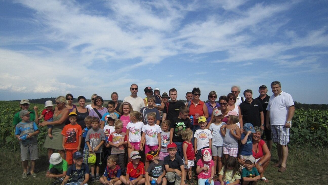 Zwei Anhänger waren voll und bei herrlichem Wetter konnte die Heimatgemeinde der Kinder erkundet werden. Der erste Halt war beim Wasserreservoir der EVN in Enzersdorf. Dort konnten die Kinder sehen und hören, von wo das Wasser herkommt. Insgesamt nahmen ca. 50 Personen am ersten Programmpunkt des Ferienspieles 2012 teil.