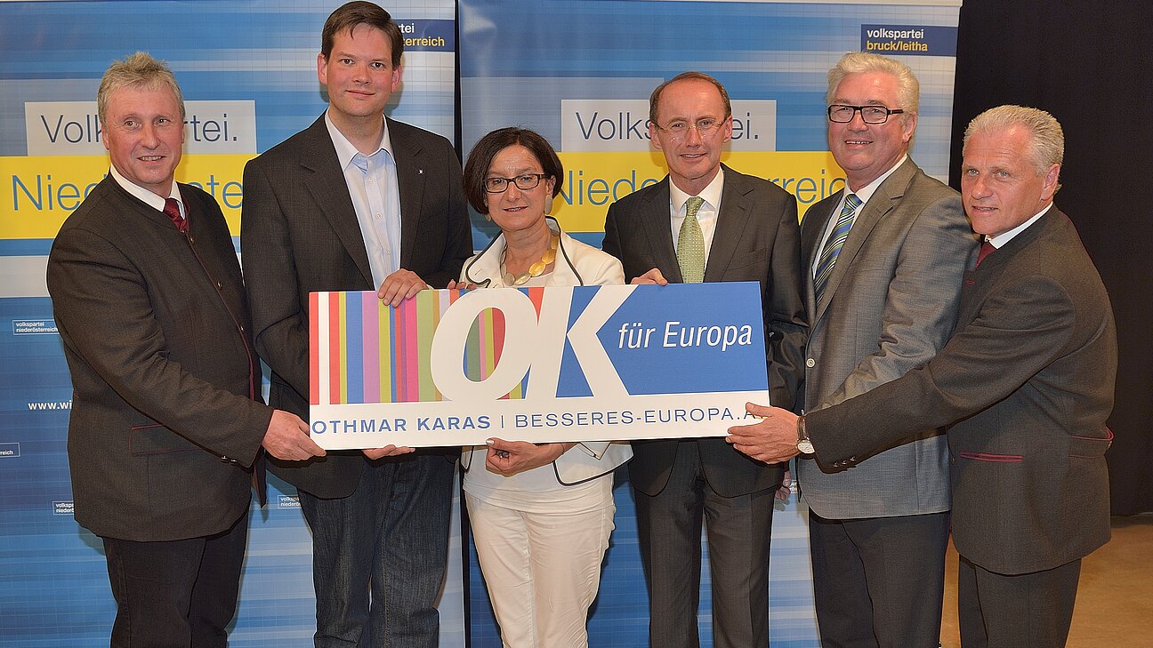 Über 200 Funktionäre, Mitglieder, Vertreter aus Wirtschaft, Kultur aus dem Bezirk Bruck und Teilbezirk Schwechat kamen am 2.5. (einem Fenstertag), um mit den beiden Spitzenkandidaten zur Europawahl, Othmar Karas und Lukas Mandl, den europäischen Gedanken weiterzuentwickeln. Auch Innenministerin Mag. Johanna Mikl ließ sich diese großartige Veranstaltung nicht entgehen. Bezirksparteiobmann Bundesrat Bgm. Gerhard Schödinger führte die Diskussion und konnte auch die 3 Ehrenbezirksparteiobleute Fritz Hensler, Franz Rupp und Hans Klupper begrüßen. Ein europäisches Buffet sorgte für den krönenden Abschluß der Veranstaltung.