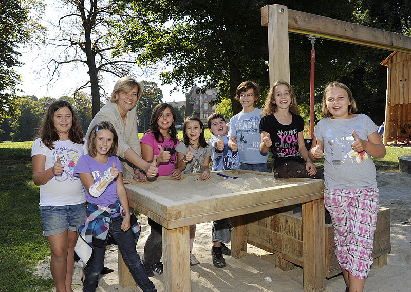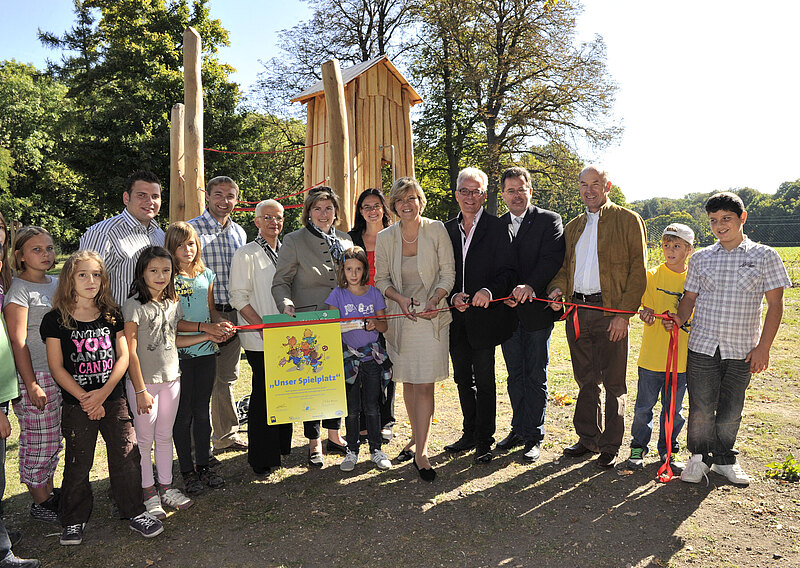 Bis Juni 2011 wurde an der Fertigstellung des Spielplatzes gearbeitet, neben einem Baumhaus mit „Schlossblick“ und anschließendem Seiledschungel gibt es eine lustige Pendelwaage, eine Rutsche mit barrierefreiem Podest, eine barrierefrei zufahrbare Sandbaustelle und alle Möglichkeiten, um es sich zwischen Büschen und Sträuchern gemütlich zu machen.