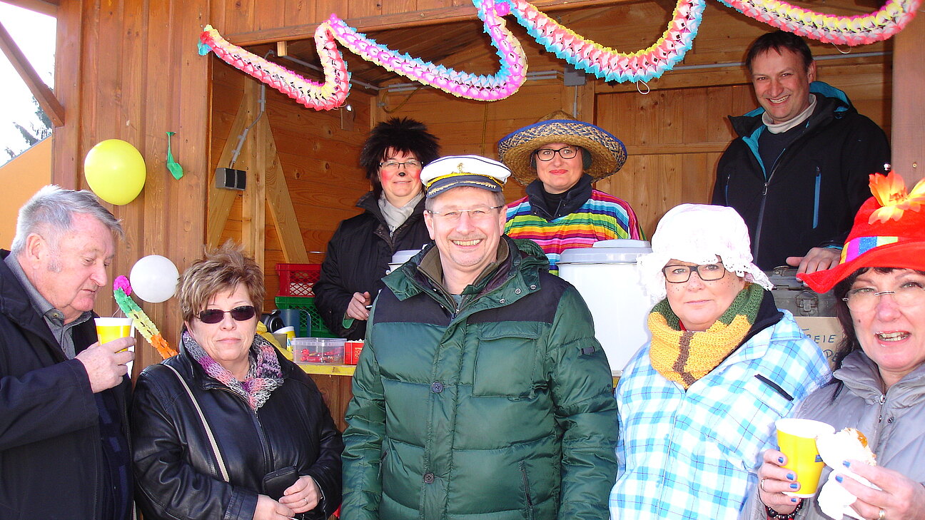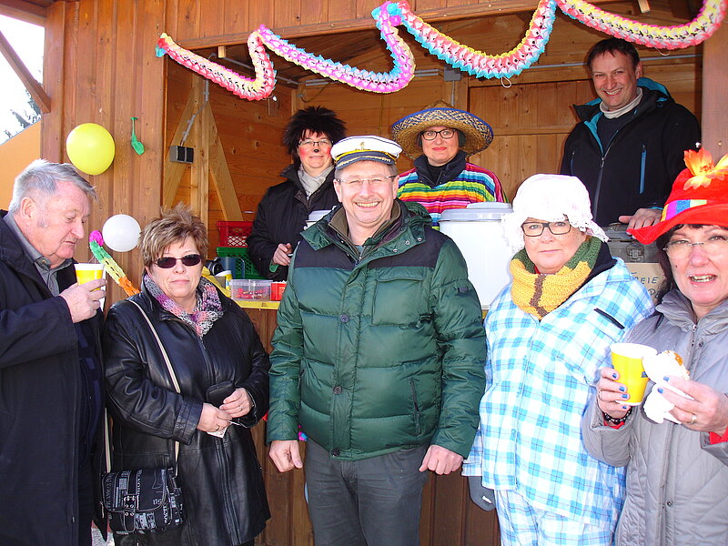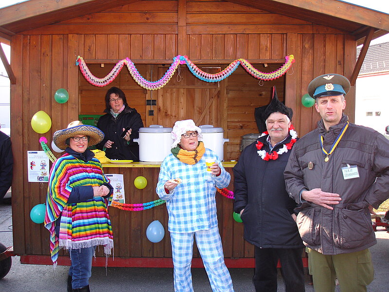 Glühwein, Punsch, Krapfen und viel gute Laune gab es am Faschingsdienstag vor der ÖVP Faschingshütte in Pischelsdorf und Götzendorf bevor man sich zum traditionellen Abschluss in der Hölzl-Halle einfand.