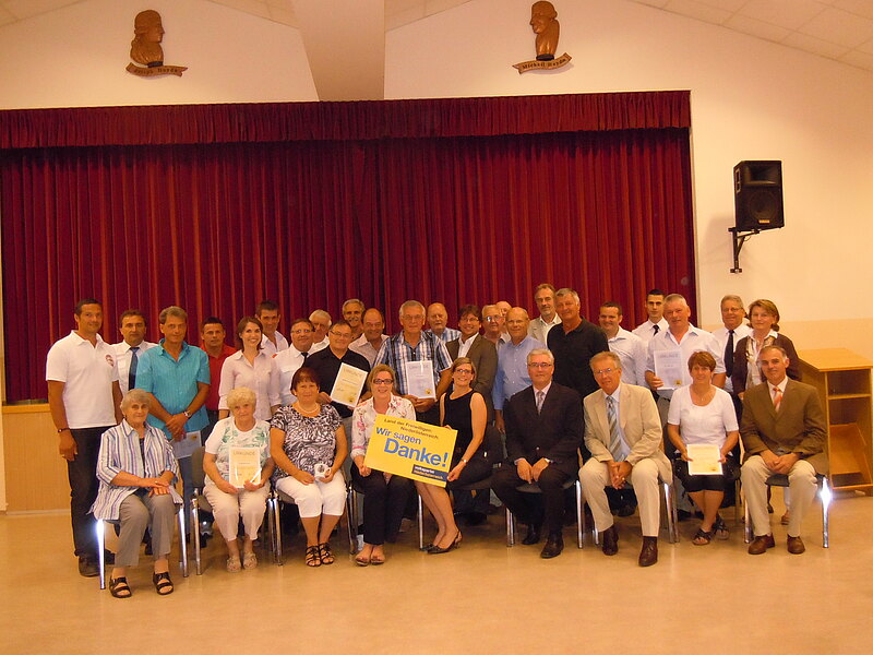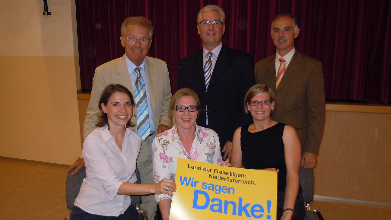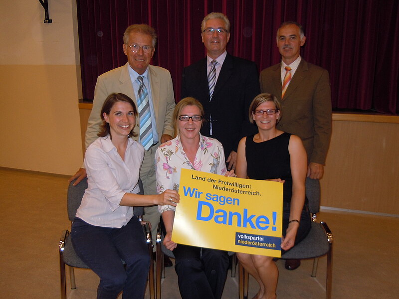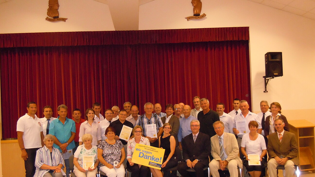 Bgm Herbert Speckl, Vbgm Albert Mayer, BPO Friedrich Hensler und Gf. GPO Markus Breyer sagten „DANKE“ zu allen Vereinen der Gemeinde Rohrau sowie deren Katastralgemeinden Hollern, Pachfurth und Gerhaus. Neben der Dankes-Urkunde, unterzeichnet von LH Dr. Erwin Pröll und BPO Friedrich Hensler, erhielten die Freiwilligen zusätzlich ein kleines Geschenk seitens der Gemeindeführung und unseres Bürgermeisters.