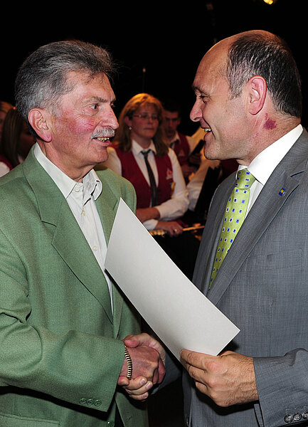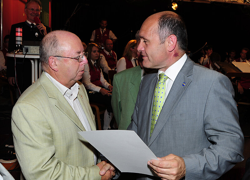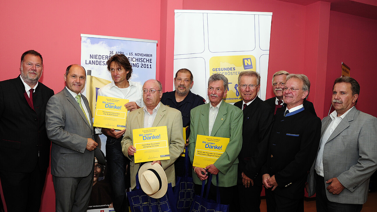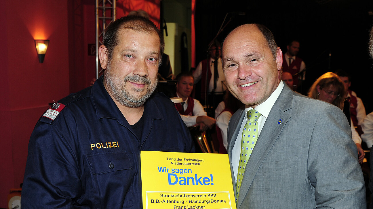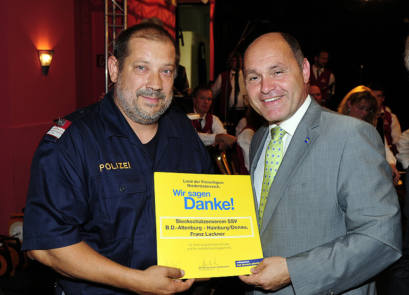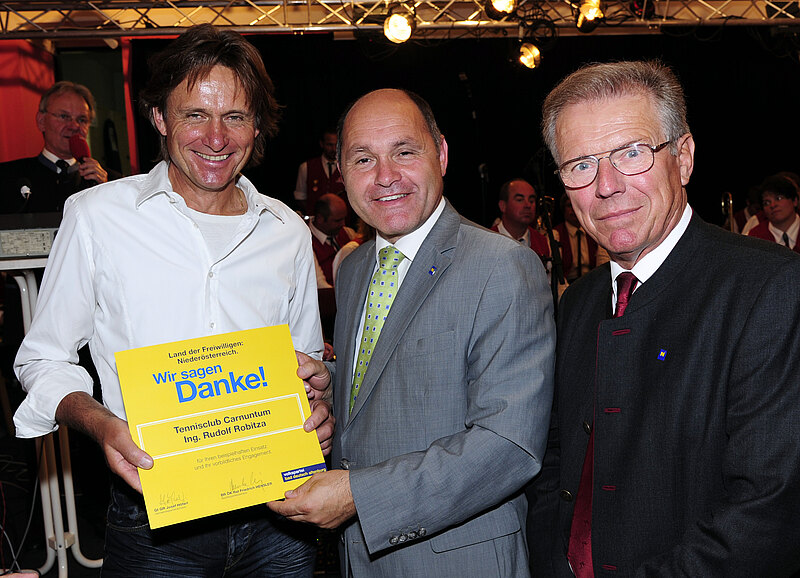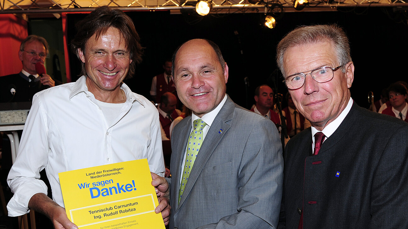 Bei der an Sonntag 29. Mai stattgefundenen Veranstaltung „Gesundheit macht Spaß“ in Bad Deutsch-Altenburg wurde im Anschluss an den Radio Niederösterreich Frühschoppen die Ehrung der Ortssieger aus dem Bewerb „Land der Freiwilligen“ vorgenommen. Landeshauptmannstv. Wolfgang Sobotka, der dieser Sendung beiwohnte, ließ es sich nicht nehmen, zusammen mit Bundesrat Friedrich Hensler und dem Ortsparteiobmann Josef Höferl, die Ehrung durchzuführen. Die Moderation des Festaktes hatte Fraktionsführer Franz Pennauer übernommen Es wurden vier Bürger auserkoren, die allesamt auf eine langjährige Vereinstätigkeit zurückweisen können. Wolfgang Reinisch ist für seine Tätigkeit in der Feuerwehr gewählt worden. Er ist mit dem heurigen Jahr bereits 43 Jahre Feuerwehrmann. Er war praktisch von Beginn an schon als Funktionär tätig und krönte seine Laufbahn als Feuerwehrkommandant von 2005- 2010. Sein großer Verdienst war der Aufbau der Feuerwehrjugend in Bad Deutsch-Altenburg. Mag. Karl-Heinz Geng als Geschäftsführer der „Freunde der Feuerwehr“. Dieser Verein hat in den letzten Jahren ca. 20.000 Euro für die Ausrüstung der Feuerwehr und im Speziellen der Feuerwehrjugend gesammelt. Franz Lackner Stockschützenverein Bad Deutsch-Altenburg/ Hainburg (SSV). Für seine Jugendarbeit, die von Landesmeistertiteln in U14 und von der Einberufung seiner Schützlinge A. Prochazka und M. Kaufmann die NÖ Landesauswahl bestätigt wurde. Ing. Rudolf Robitza für den Tennisverein. Seit 30 Jahren in Funktionärstätigkeit. Jetzt zum zweiten Mal Obmann des Vereines. In dieser Zeit konnte mehr als zweihundert Kindern im Rahmen der „Jugendförderung“ das Tennisspiel beigebracht werden. Herzliche Gratulation den Siegern auch von der Bezirksgeschäftsleitung und Redaktion
