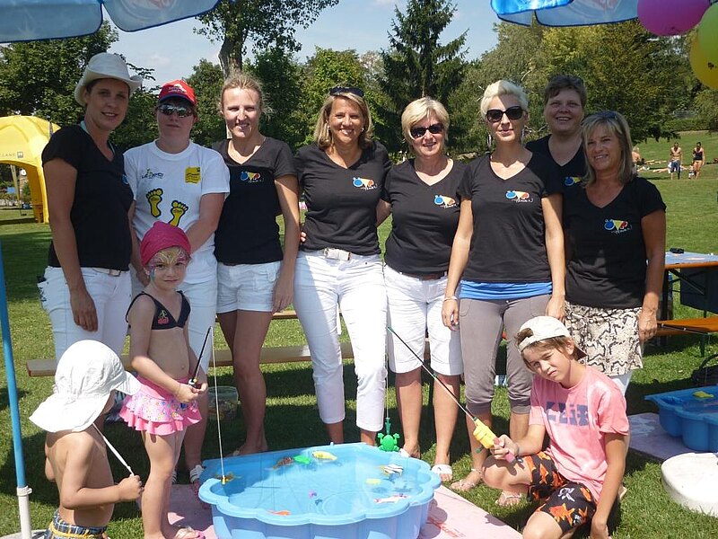 Das Fischefangen fand wieder großen Anklang, da es einfach lustig ist, bei großer Hitze mit dem Wasser spielen zu können und dabei einige Fische angeln zu dürfen. Alle Vorstandsdamen halfen zusammen, dass es ein gelungener Beitrag zum Fest wurde!