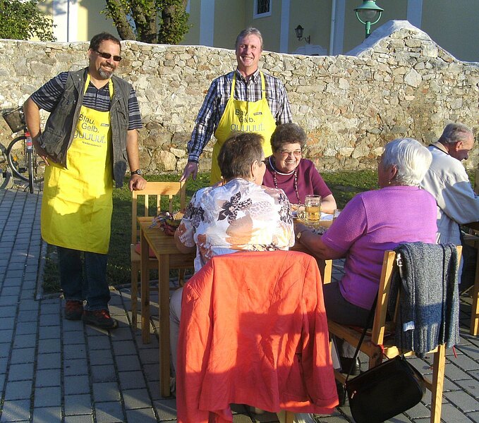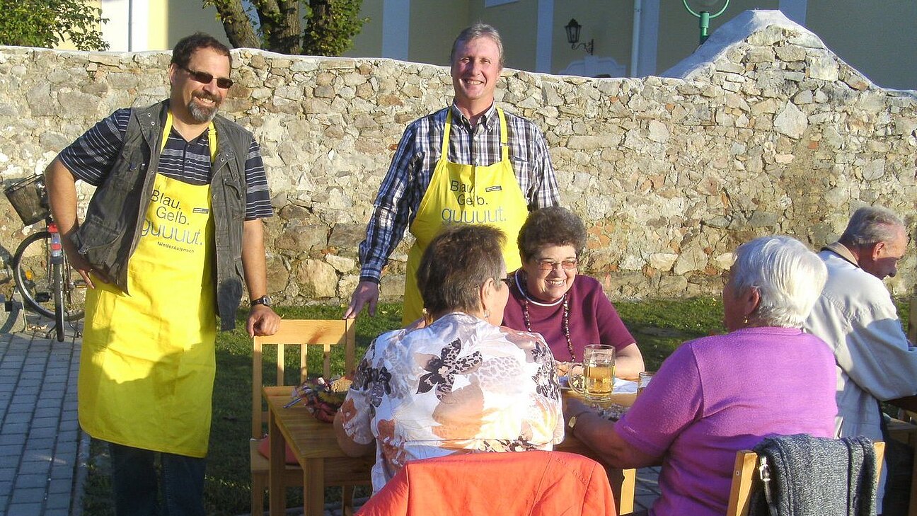 3 Tage lang servierte die ÖVP in Wolfsthal Heurigenschmankerln und jeder einzelne Tag war ein Erfolg und wurde von der Bevölkerung gut angenommen. Bgm. Gerhard Schödinger und Vizebürgermeister Michael Haberler machten in ihren Blau-Gelben Schürzen im Service eine sehr gute Figur.