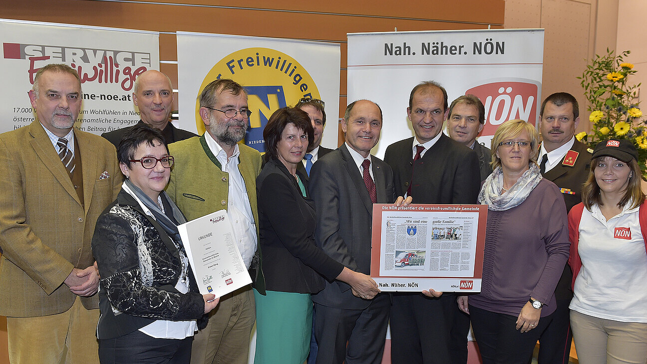 Die Gemeinde Höflein hat eine Auszeichnung für die "vereinsfreundlichste Gemeinde" erhalten. Landeshauptmann-Stellvertreter Wolfgang Sobotka übergab die Ehrung stellvertretend für die Vereine an Bürgermeister Otto Auer.