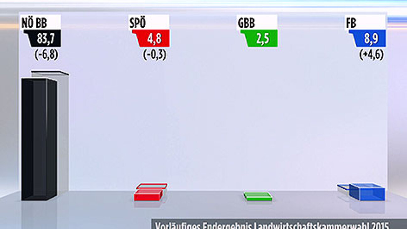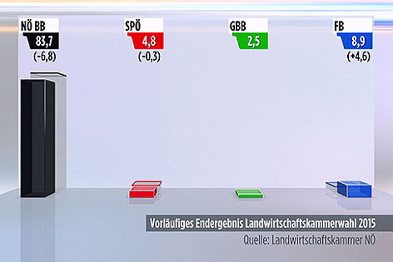 Dieses vorläufige Endergebnis bedeutet in Mandaten: Von den 36 für die Vollversammlung der Landwirtschaftskammer zu vergebenden Sitzen erhält der ÖVP-Bauernbund 30 (minus 2), die Freiheitlichen sind nun erstmals in der Vollversammlung vertreten, sie kommen auf sechs Mandate (plus 6). Die SPÖ-Bauern haben keinen Sitz in der Vollversammlung, da sie unter der Fünf-Prozent-Hürde blieben. Hermann Schultes, Spitzenkandidat des ÖVP-Bauernbundes und amtierender Kammer-Präsident, war trotz der Verluste zufrieden: „Natürlich hätte ich gerne das letzte Ergebnis noch einmal gesehen, aber die Zeiten haben sich ein bisschen verändert und die Zeit für die Bauern ist schwer geworden. Wir haben ein Wahlergebnis, das ist das Beste von allen Landwirtschaftskammern, ich glaube auch das Beste von allen Sozialpartnergruppen, wir haben. Wir hatten eine Wahlbeteiligung, die ganz ordentlich ist. Wir werden wieder mit Freude eine starke Politik machen.“
