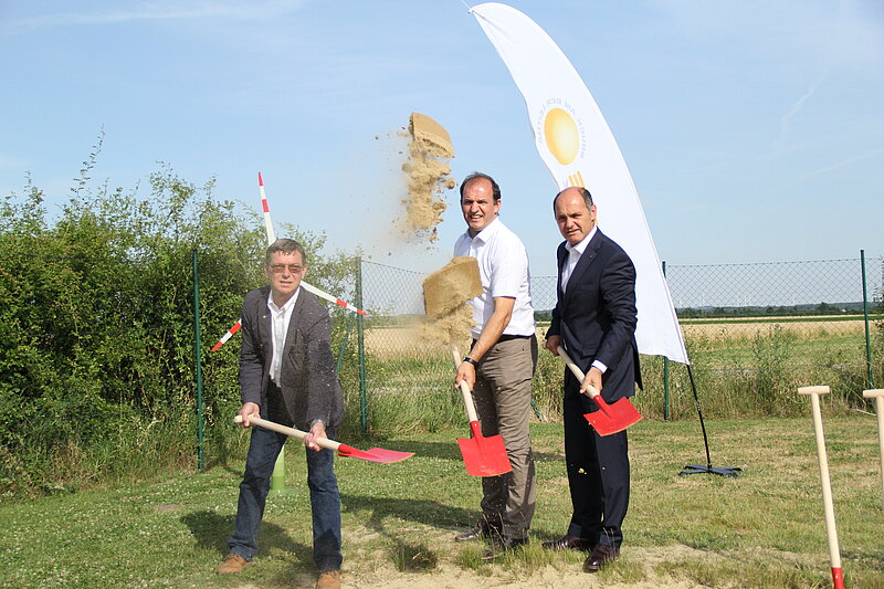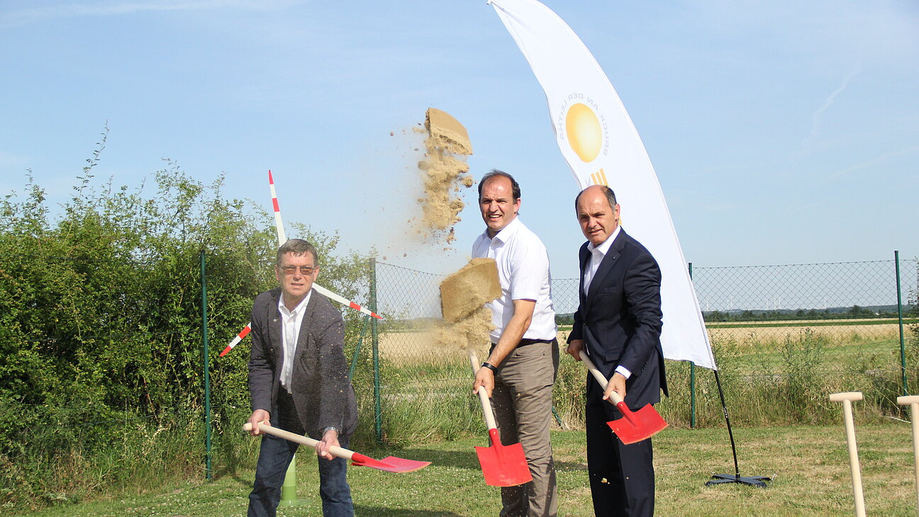 In der Region Höflein-Ost entstehen weitere 12 Windkraftanlagen. Pfarrer Adam Konopka, Bgm. Otto Auer und LH Stvtr. Wolfgang Sobotka schwangen den Spaten bei der Spatenstichfeier für den neuen Windpark, der ab Mitte 2015 ca. 54.000 Haushalte mit Strom versorgen soll.