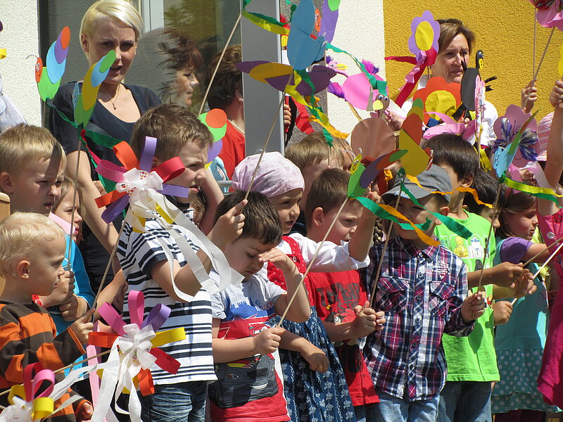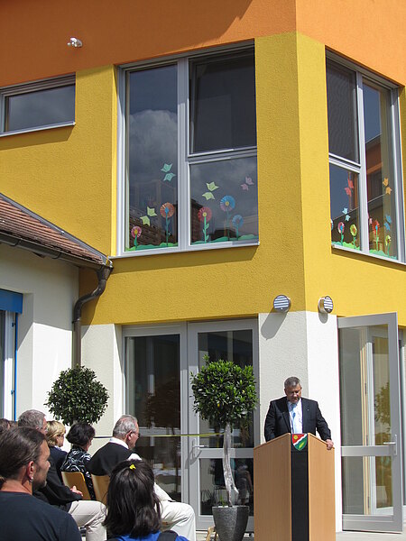 Landesrätin Barbara Schwarz eröffnete gemeinsam mit Bgm. Markus Plöchl und Vizebürgermeister Michael Kober den neuen Kindergartenzubau in Enzersdorf bei strahlenem Sonnenschein. Die Kindergartenkinder trugen ihre dafür eigens einstudierten Lieder vor, bevor das Haus gesegnet den Kindern übergeben wurde.