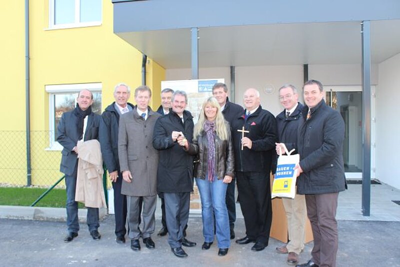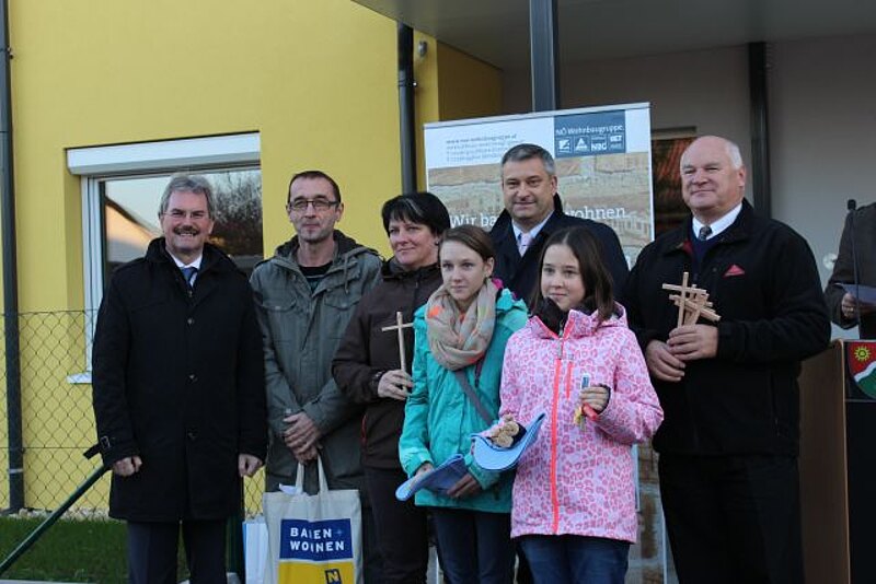 Vergangenen Dienstag wurde der neue Wohnbau "Am Satzfeld" in Margarethen feierlich eröffnet. Landesrat Mag. Karl Wilfing und Bürgermeister Markus Plöchl übergaben die Schlüssel an die neuen Mieter.