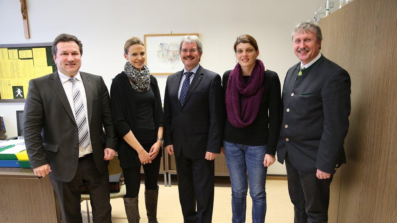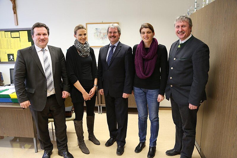 Direktor Mathias Schön vom Brucker Gymnasium empfing Landesrat Karl Wilfing und Bezirksparteiobmann Bgm. Gerhard Schödinger gemeinsam mit der Kandidatin zur Landtagswahl Kathi Pirchner und Vertreter des Lehrpersonals zu einem kurzen Gedankenaustausch in der Schule.