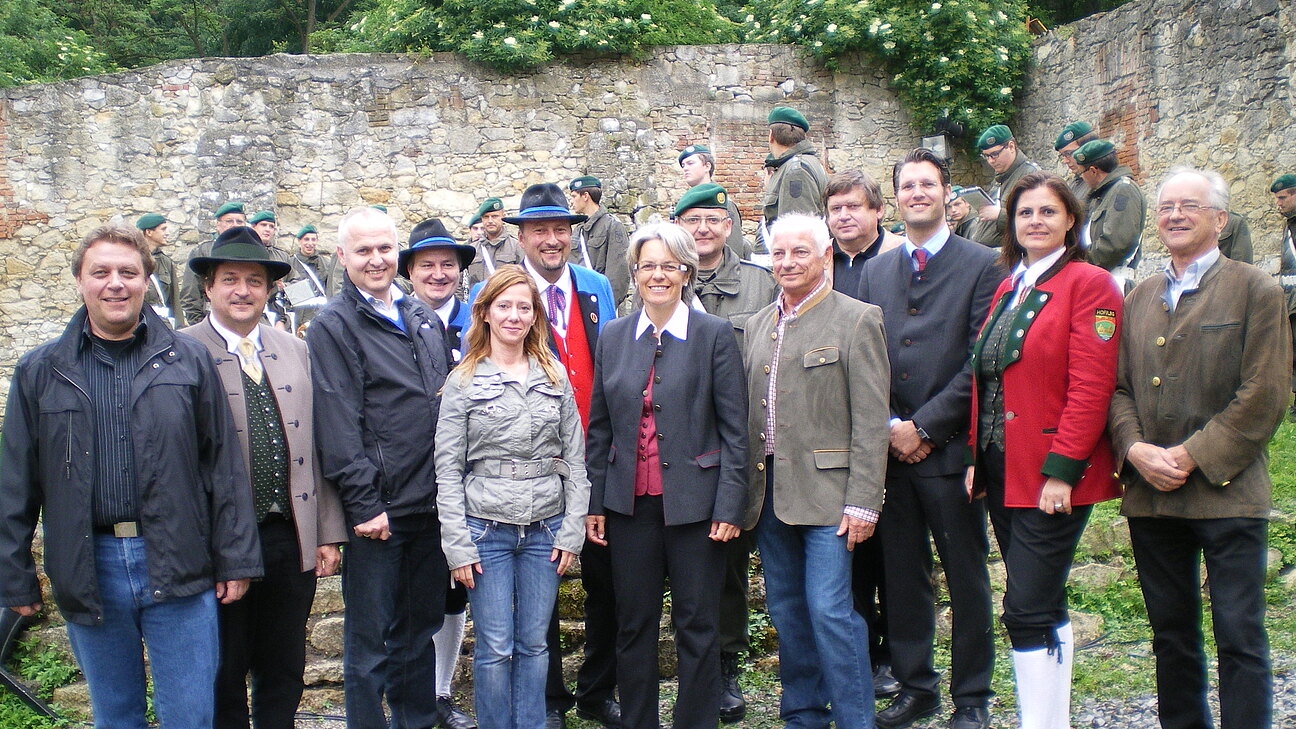 Im Klostergarten des ehemaligen Klosters St. Anna spielten die Musikvereine Hof, Göttlesbrunn und Mannersdorf gemeinsame Stücke wie den Brucker Lagermarsch. Im Anschluss konnten die zahlreichen Besucher, trotz regnerischer Verhältnisse, die Militärmusik Niederösterreich unter der Leitung von