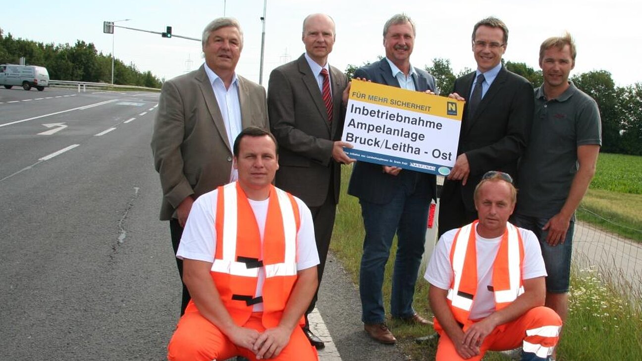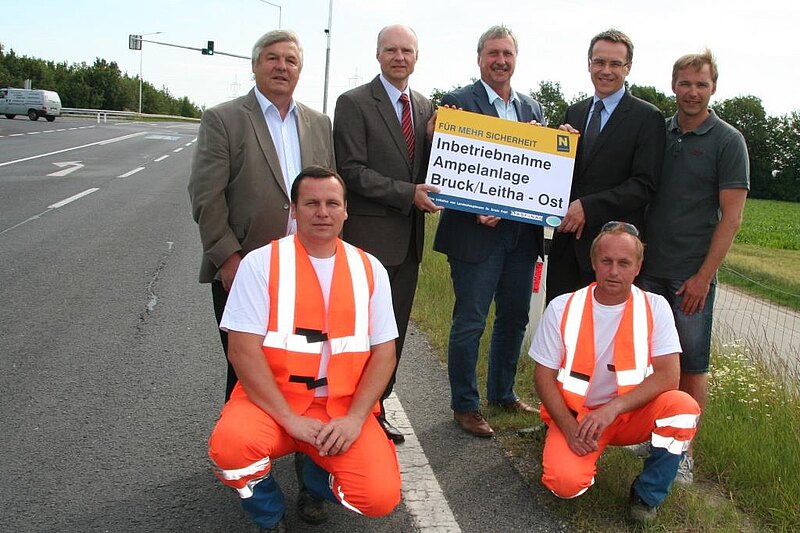 Die Planung erfolgte durch das Büro K2 aus Perchtoldsdorf. Es wurde auch die Tatsache berücksichtigt, dass zukünftig anstehende Schwertransportfahrten (wie etwa Windradflügel) über den gegenständlichen T-Knoten reibungsfrei abgewickelt werden können. In einer Bauzeit von rund 2 Monaten wurden die notwendigen Straßenbau-, Fundierungs- und Grabarbeiten für die Masten und die Bodenmarkierung von der Straßenmeisterei Bruck an der Leitha sowie die Elektroarbeiten für die Verkehrslichtsignalanlage von der Firma Siemens aus 1111 Wien durchgeführt.
