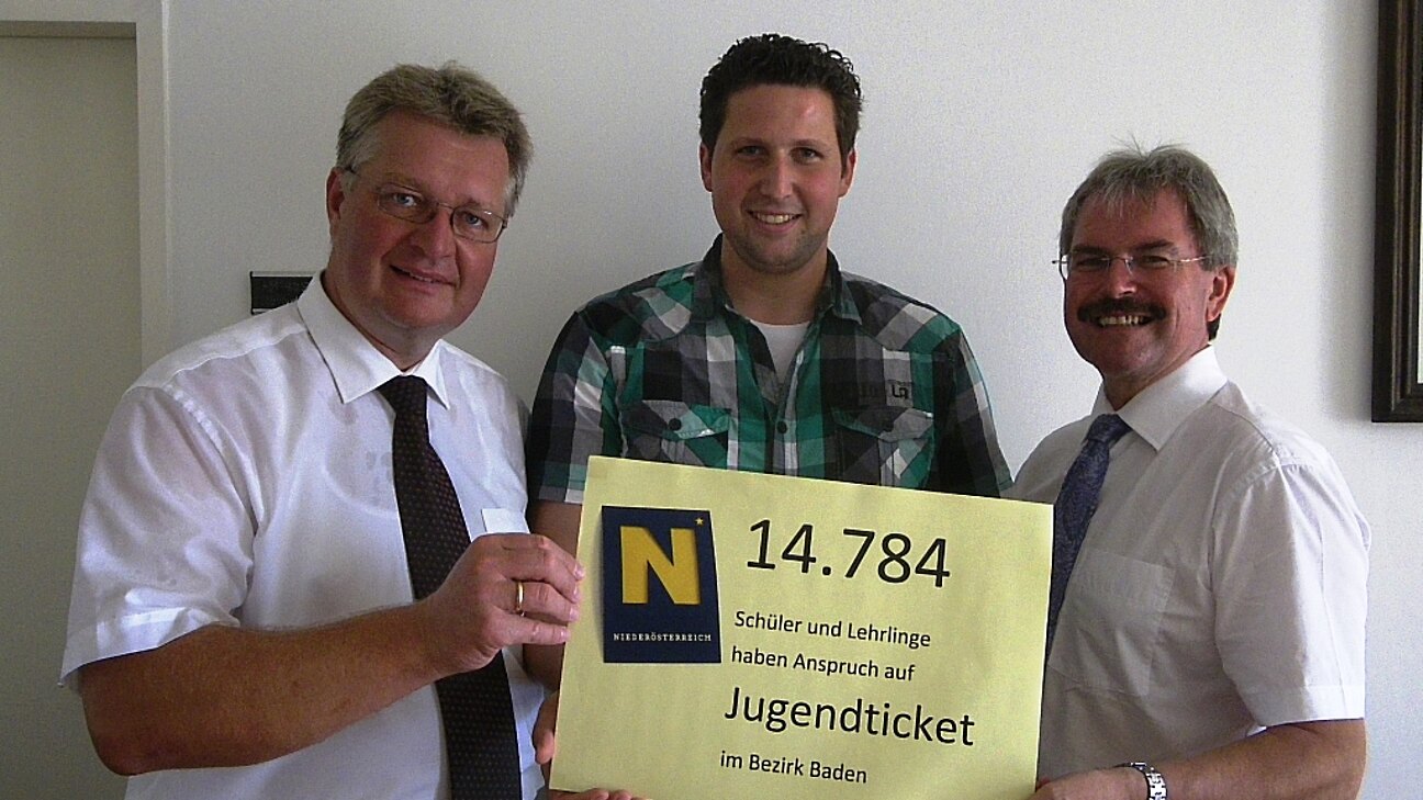„Landesweit ist seit der Einführung des Top-Jugendtickets die Nutzung dieses Angebots um 30 Prozent gestiegen.“ so NÖ-Verkehrslandesrat Karl Wilfing, der gemeinsam mit LAbg Kainz und JVP Obmann Andreas Steiner die aktuellen Zahlen für den Bezirk Baden präsentierte.