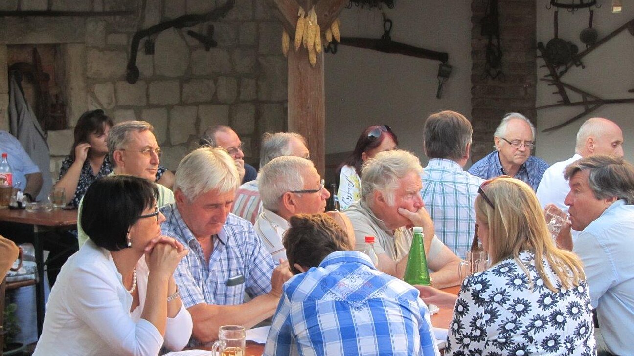 Die beiden NÖAAB-Bezirksparteiobleute Bundesrat Gerhard Schödinger (Bruck) und LAbg. Christoph Kainz (Baden) durften den neuen NÖAAB-Landesgeschäftsführer BR Bernhard Ebner und Nationalrat August Wöginger (Generalsekretär des ÖAAB) gemeinsam mit Funktionären aus beiden Bezirken zu einer Konferenz in gemütlicher Atmosphäre beim Heurigen in Deutsch Brodersdorf einladen, um sich nach der Sommerpause für die NRW 2013 gemeinsam zu rüsten. Die beiden NÖAAB-Spitzenkandidaten des Bezirks Bruck (Renate Kousal) und des Bezirks Baden (Johann Zöhling) für die NRW 2013 konnten sich dabei ebenfalls kurz vorstellen.