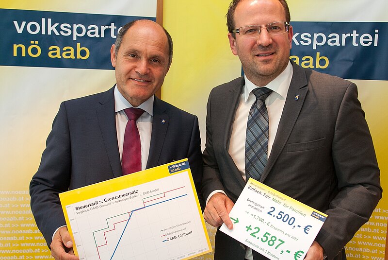 „Mit dem Gleittarif-Modell des ÖAAB, an dessen Erarbeitung sich der NÖAAB auf Bitten des Bundes intensiv beteiligt hat, wird der Mittelstands-Buckel, der seit Jahrzehnten die Steuer-Hauptlast zu tragen hatte, spürbar entlastet. Im Vergleich mit anderen Modellen zeigt sich, dass gerade der Mittelstand und Familien bisher vernachlässigt wurden“, erklärt NÖAAB-Obmann LH-Stv. Wolfgang Sobotka im Rahmen einer Präsentation, bei der das ÖAAB-Modell im Details vorgestellt wurde.