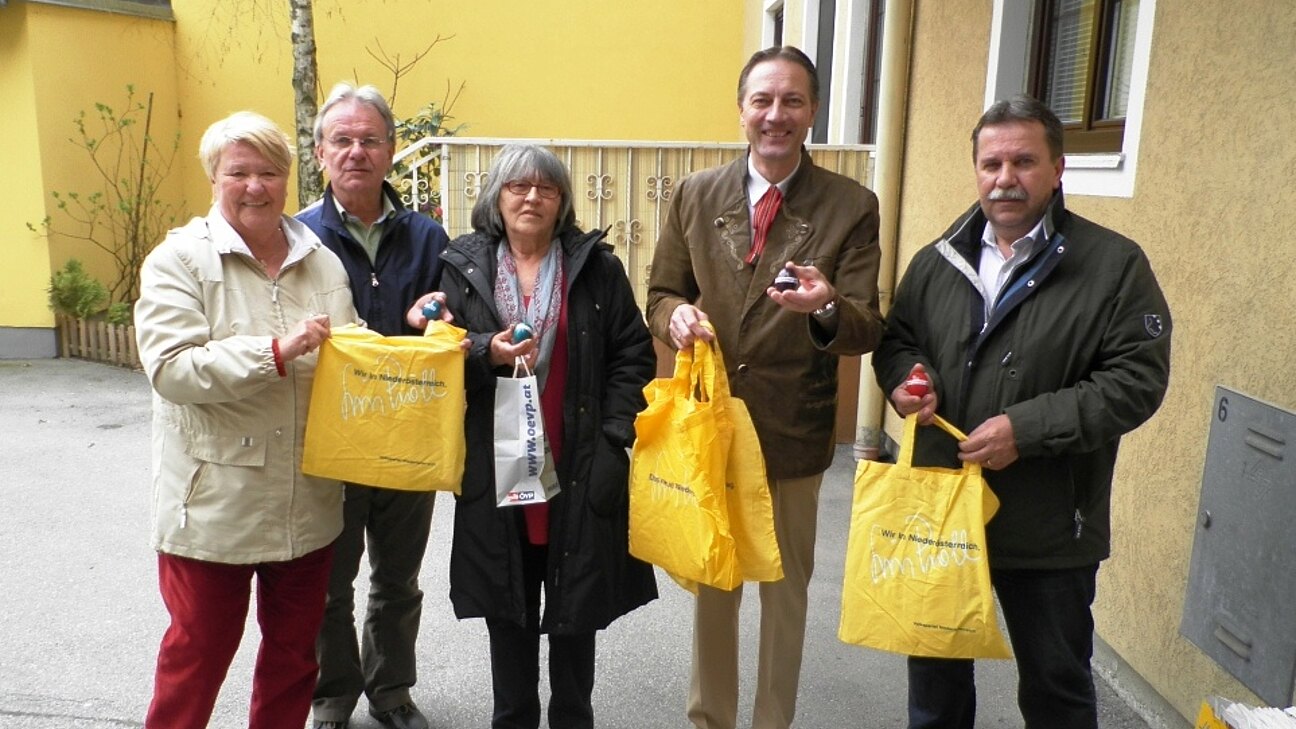 Der neue ÖAAB-Gemeindegruppenobmann, Reinhard Hohenegger, und seine Vorstandsmitglieder verteilten Ostereier an alle ÖAAB-Mitglieder.