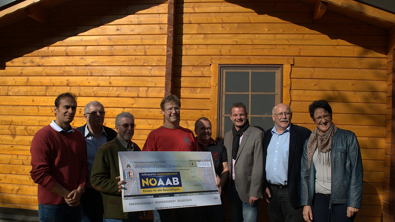 Am Samstag, 11.10.2014, war Tag der offenen Tür am neuen Bogensportplatz des BSV-Dakota in Hainburg. Der ÖAAB Hainburg überreichte bei dieser Gelegenheit einen Spendenscheck im Wert von 500 € für das neue Vereinshaus (der BSV-Dakota finanziert sich ausschließlich über Mitgliedsbeiträge und freut sich somit über jede finanzielle Zuwendung).
