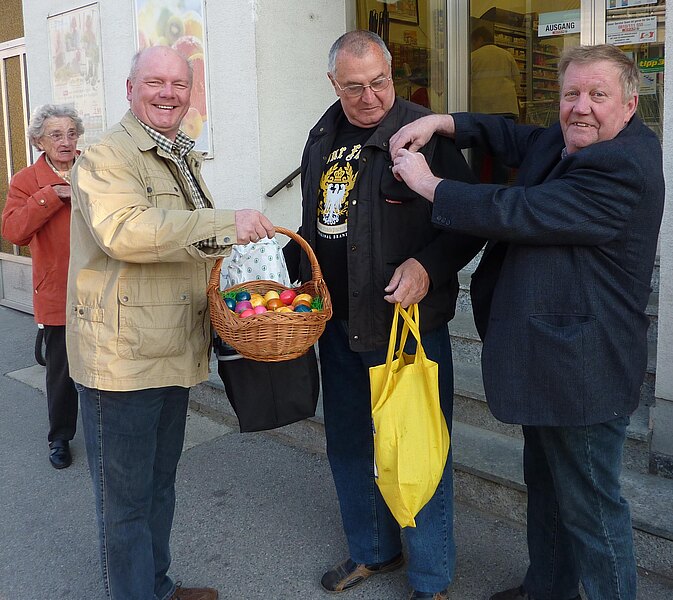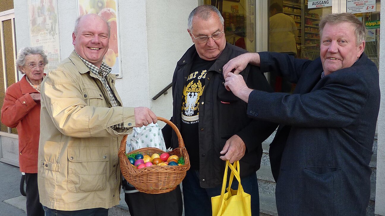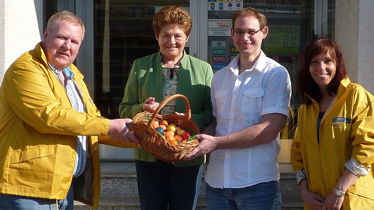 Bei strahlendem Wetter und bester Laune verteilten Vzbgm Schmitt und das ÖVP Team Ostergrüße in Form von bunten Ostereiern. Das Angebot der Eier war so vielfältig, dass der eine oder andere, ein 2. oder 3. mal vorbei schaute. Ein Vorbeikommender: "Ich musste noch nie 100 Meter weiter parken wenn ich zum Schmutterer einkaufen ging. Ist das eure tolle Aktion oder sind das die super Preise vom Schmutterer?" Egal warum, wir, das Team der VP Trautmannsdorf, konnten vielen Personen ein klein wenig Freude schenken, und das war gut so.