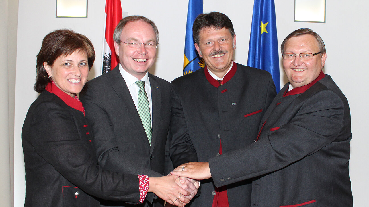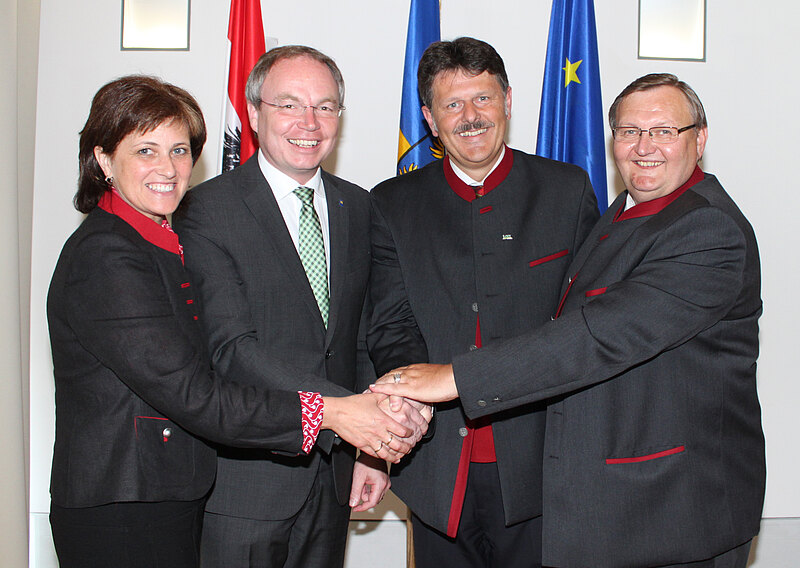 Mit der einstimmigen Wiederwahl von Ing. Andreas Freistetter (NÖAAB-FCG) zu ihrem Präsidenten startete die NÖ Landarbeiterkammer bei der konstituierenden Vollversammlung im Ostarrichi-Saal im St. Pöltner Landhaus in ihre 13. Funktionsperiode. Die Angelobung nahm Landesrat Dr. Stephan Pernkopf vor, der die Verdienste der NÖ LAK und seiner Spitzenvertreter würdigte: „Mit ihrem Präsidenten Andreas Freistetter an der Spitze ist die Landarbeiterkammer nicht nur eine starke Stimme für die Arbeitnehmerinnen und Arbeitnehmer in der Land- und Forstwirtschaft in Niederösterreich, sondern auch ein stets kompetenter und zuverlässiger Partner für das Land NÖ, der auch in den nächsten Jahren mit unserer Unterstützung rechnen kann“. Auch NÖAAB-Obmann LH-Stv. Wolfgang Sobotka gratuliert: „Andreas Freistetter und sein Team sind Vorreiter für das Modell einer blau-gelben Sozialpartnerschaft. Die NÖ Landarbeiterkammer kann auf eine kraftvolle Förderlandschaft und umfassende Serviceleistung für ihre Mitglieder verweisen. Konstruktive Arbeit und intensive Zusammenarbeit über Partei- und Fraktionsgrenzen hinweg stehen im Mittelpunkt. Damit konnte Andreas Freistetter bei den Wählerinnen und Wählern aber auch bei den Kammerrätinnen und Kammerräten punkten. 82,8 Prozent Zustimmung im Land und 100% Zustimmung in der Vollversammlung sind ein klarer Auftrag dafür, den eingeschlagenen Weg fortzusetzen“.