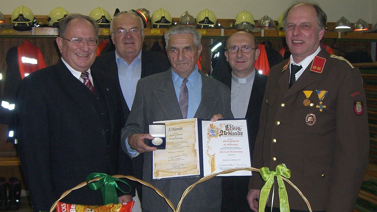 Stefan Schmiedt aus Regelsbrunn feierte seinen 80. Geburtstag. Als Gratulanten stellten sich neben Feuerwehrkommandant Günther Jelinek, auch die Gemeindevertreter Bürgermeister Hubert Zwickelstorfer und Vizebürgermeister Rudolf Trakall, sowie Pater Jacek ein.