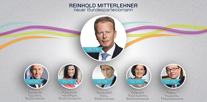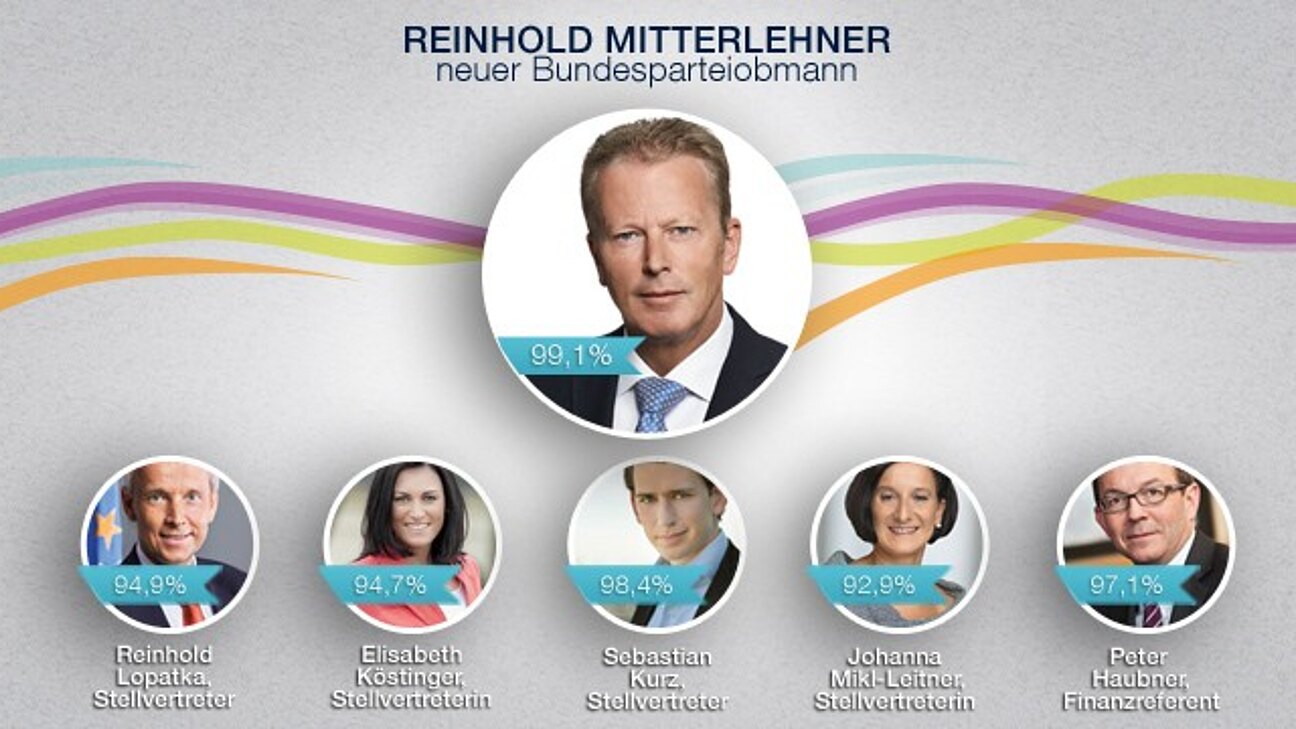 Mit 99,1% wurde Reinhold Mitterlehner eindrucksvoll und offiziell zum neuen Bundesparteiobmann der ÖVP gewählt.