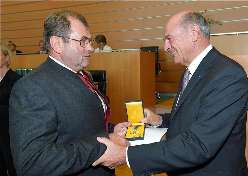 Simon Trapl, Obmann des Raiffeisen Lagerhauses Industrieviertel Nordost, bekam von Landeshauptmann Erwin Pröll das Goldene Ehrenzeichen für Verdienste um das Bundesland NÖ verliehen.