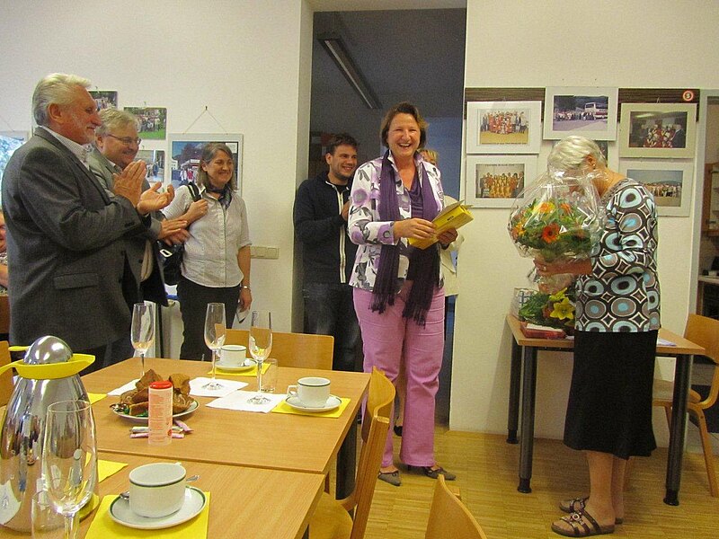 Die sichtlich überraschte Jubilarin kämpfte bei den kurzen Ansprachen mit ein paar Tränen der Rührung und wir wünschen der lieben Eva alles Liebe und Gute, vor allem aber auch Gesundheit und persönliches Wohlergehen für die nächsten elanvollen Jahre!