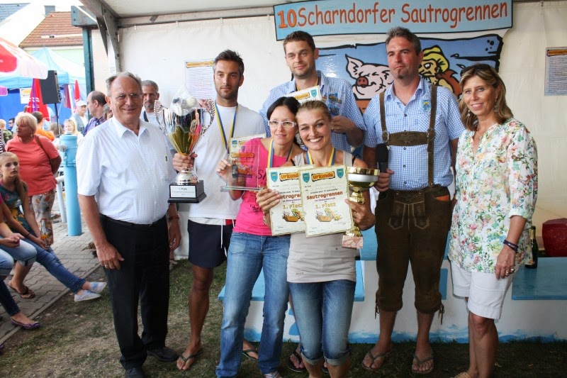 Der Reinerlös der Veranstaltung erging an die Kinderkrebsforschung. Bürgermeister Hubert Zwickelstorfer freute sich die Siegerehrung gemeinsam mit dem Obmann des Sautrogrennclubs Herbert Herl durchführen zu dürfen. Die Sieger bei den Herren waren Roland Glatzer und Robert Gaiswinkler, bei den Frauen siegten Barbara Gaiswinkler und Roswitha Mikola.