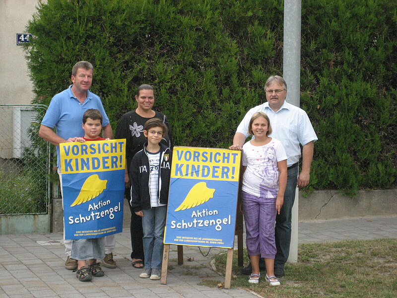 Ein Teilstück der LH 163 wurde in Wilfleinsdorf heuer wieder neu asphaltiert und die Schutzengelplakate entlang dieser Straße zum Schutze unserer Kleinen auf ihrem Weg zur Schule und in den Kindergarten von OPO Walter Steurer und VP-Stadtrat Felix Böhm wieder platziert.